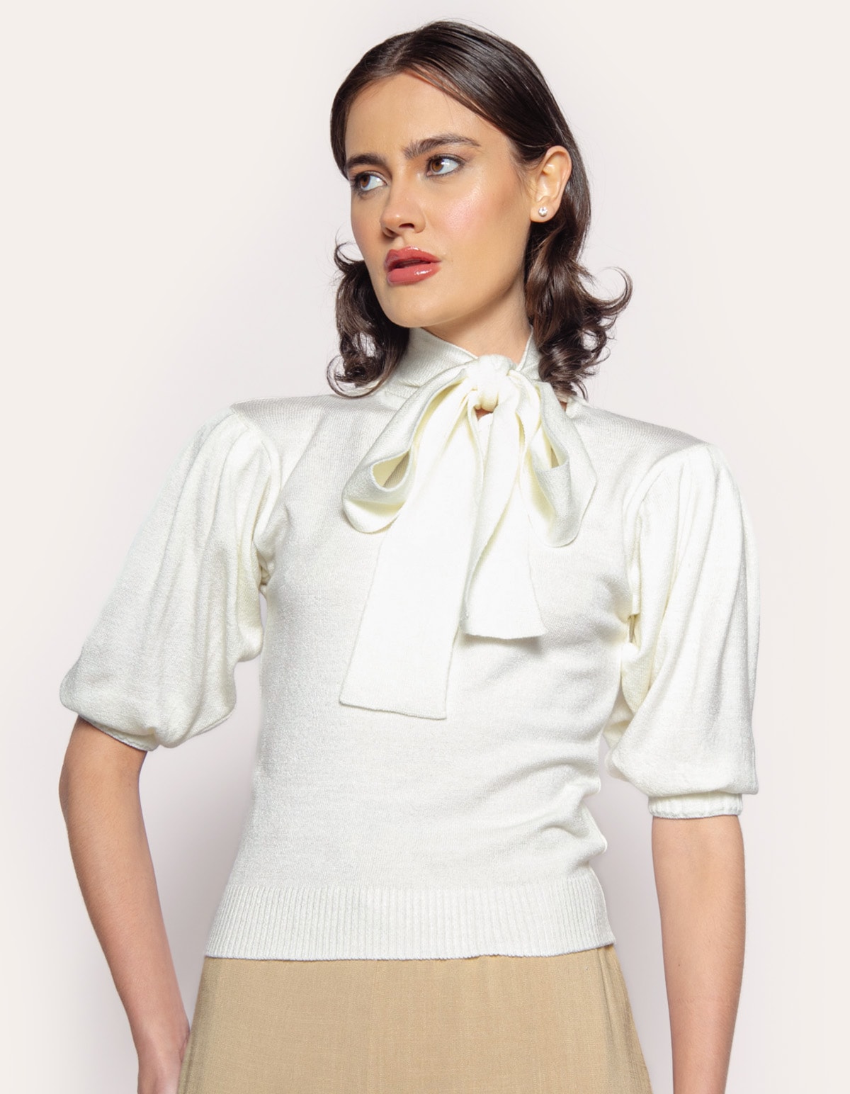 Blusa cropped tricot manga 3/4, detalhe amarração na gola. é a combinação perfeita entre sofisticação e singularidade. com seu design delicado ela é ideal para benefícios formais ou casuais, garantindo estilo e conforto para todas as temporadas.