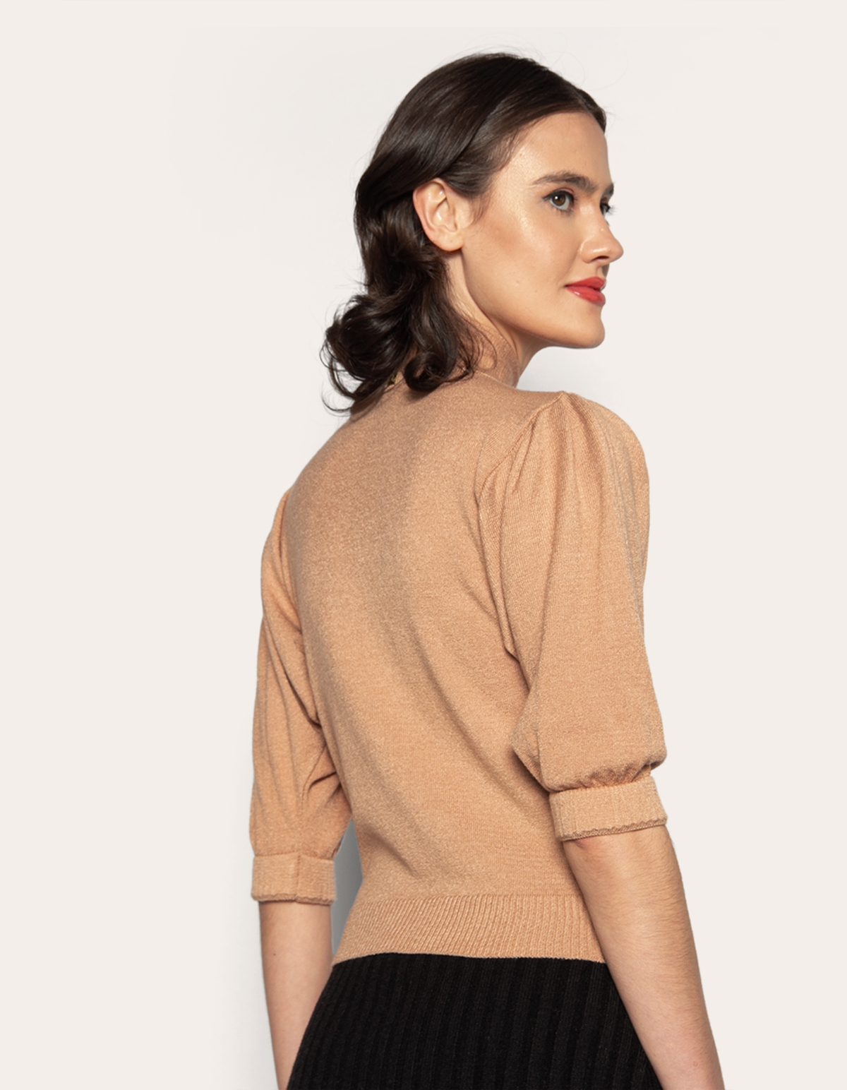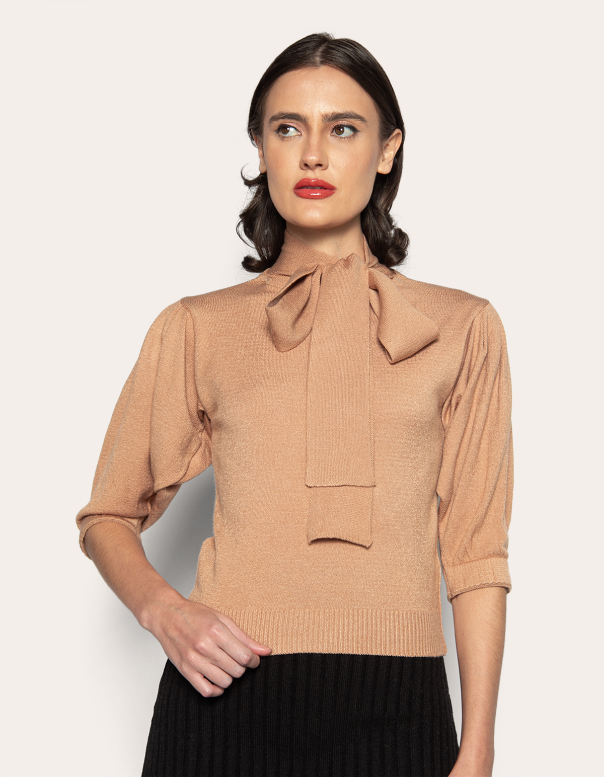 Blusa cropped tricot manga 3/4, detalhe amarração na gola. é a combinação perfeita entre sofisticação e singularidade. com seu design delicado ela é ideal para benefícios formais ou casuais, garantindo estilo e conforto para todas as temporadas.