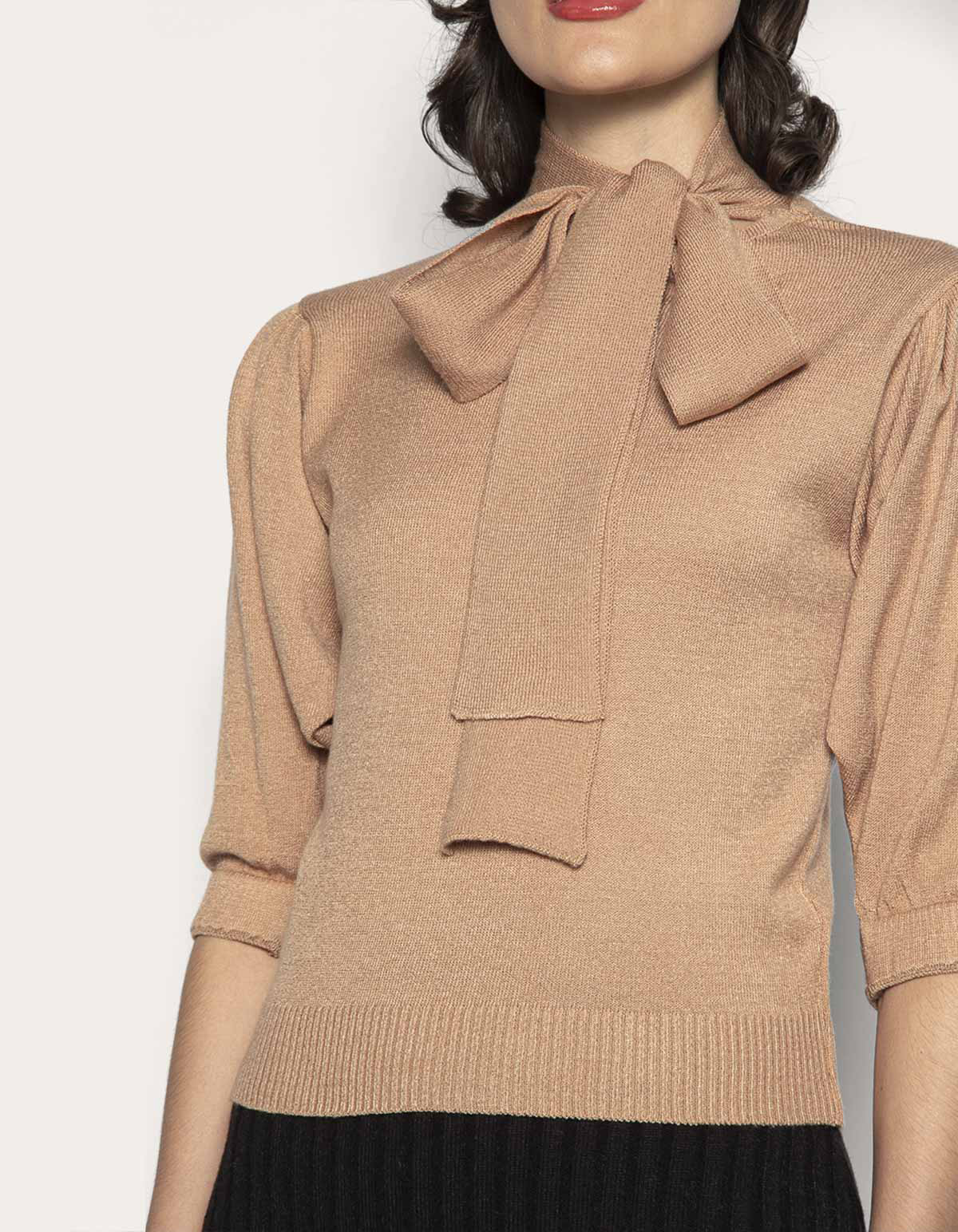 Blusa tricot gola laço
