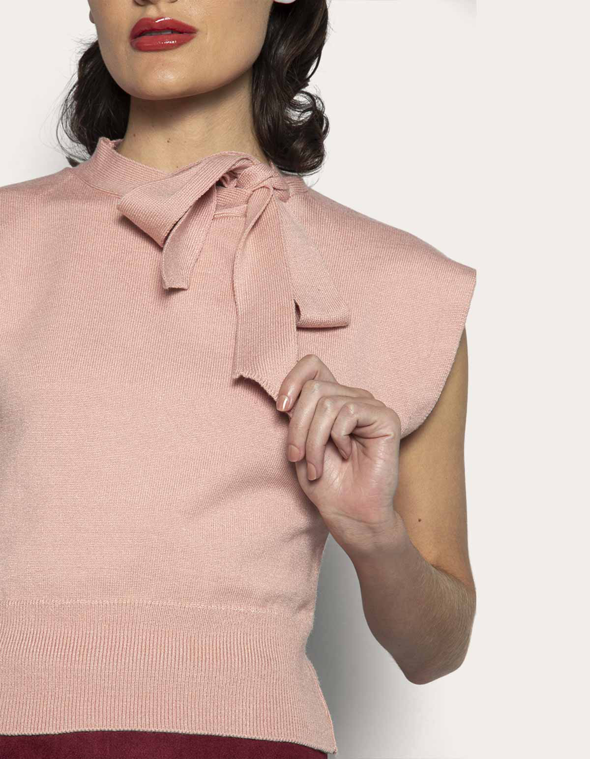 Blusa manga curta tricot com gola laço. uma peça clássica e elegante, que traz um toque de feminilidade e sofisticação ao seu visual. oferece conforto, durabilidade e um excelente caimento. o design com a gola laço confere um charme extra à blusa, tornando-a perfeita para compor looks tanto para o trabalho quanto para eventos mais informais.