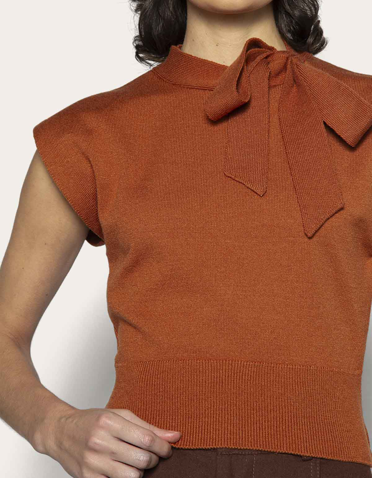 Blusa manga curta tricot com gola laço. uma peça clássica e elegante, que traz um toque de feminilidade e sofisticação ao seu visual. oferece conforto, durabilidade e um excelente caimento. o design com a gola laço confere um charme extra à blusa, tornando-a perfeita para compor looks tanto para o trabalho quanto para eventos mais informais.