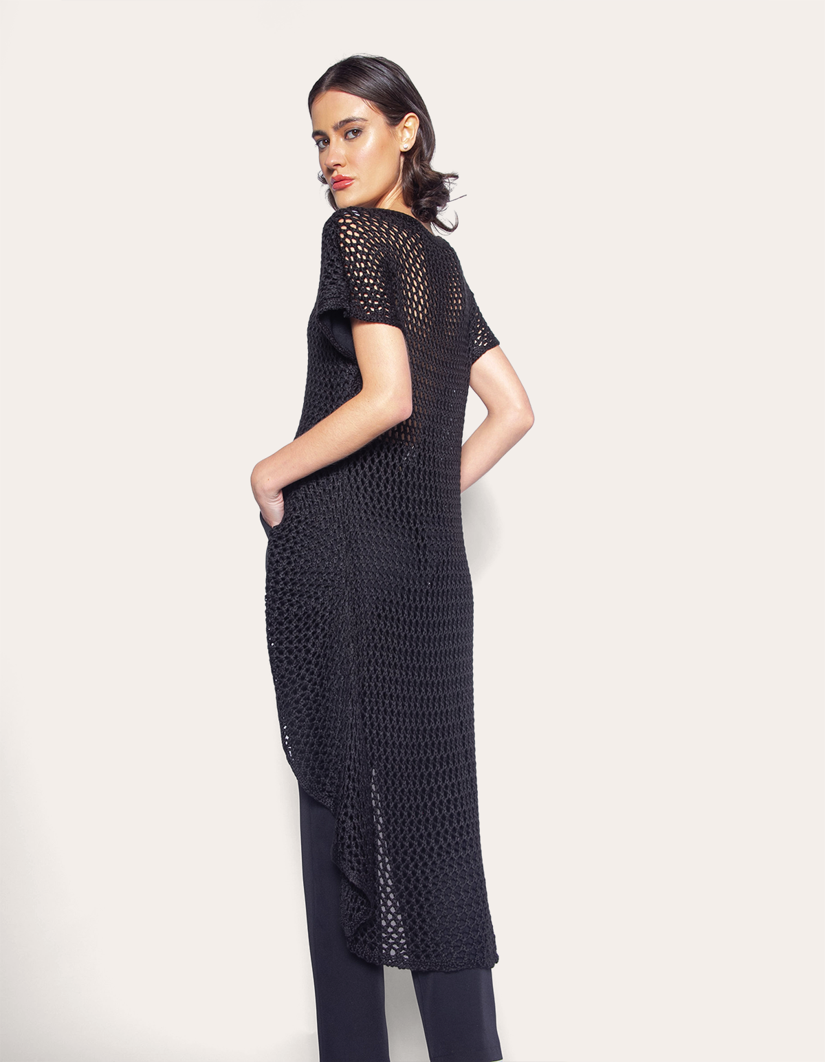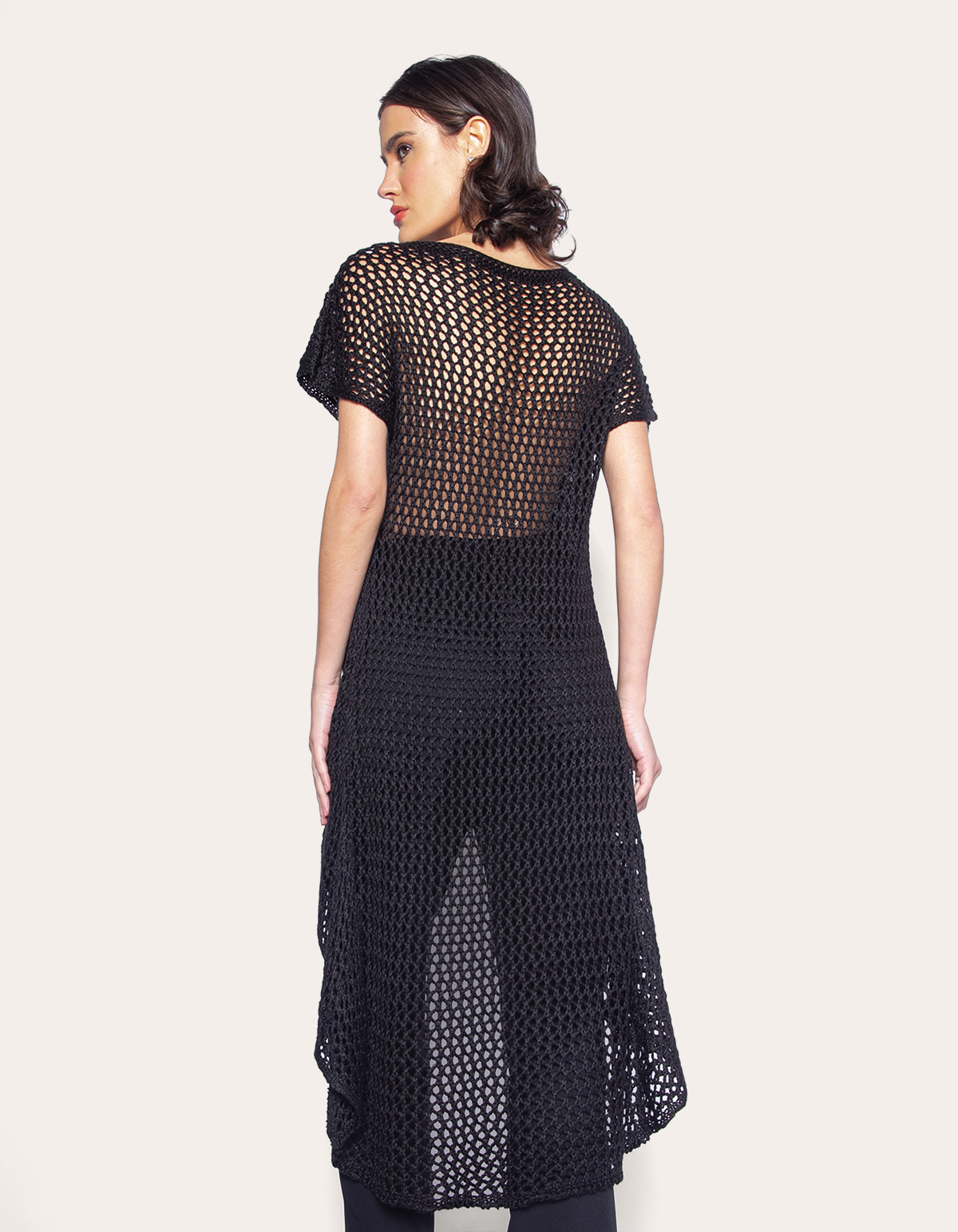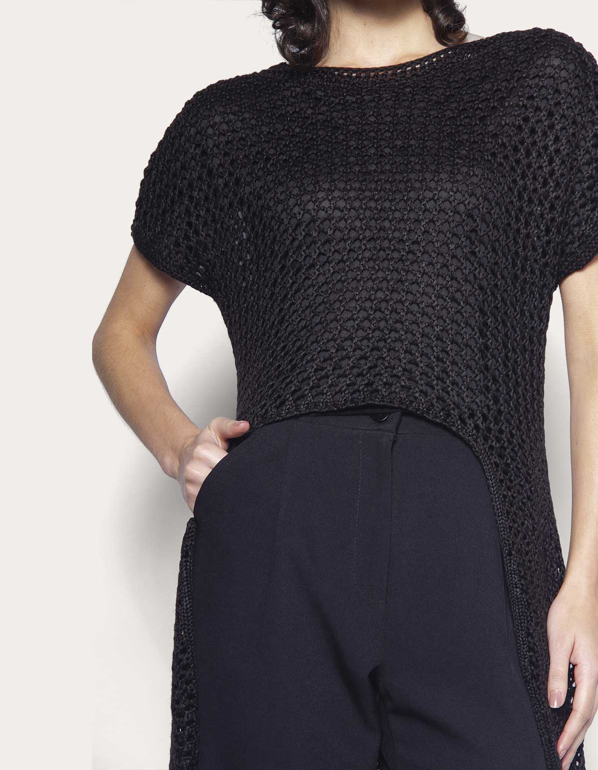 Blusa tricot ponto aberto manga curta. sua modelagem mais alongada nas costas dá um toque de sofisticação e modernidade e se torna um diferencial na peça. ideal para ir do office ao happy hour, combine com calças da mesma tonalidade para um look sofisticado.