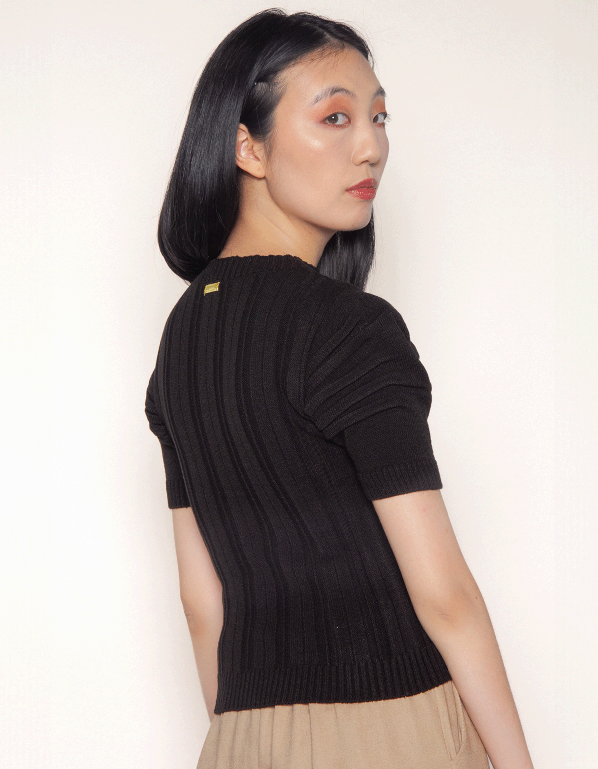 Blusa tricot ponto trança e mang curta plissada. modelo perfeito para mulheres que buscam estilo e conforto.