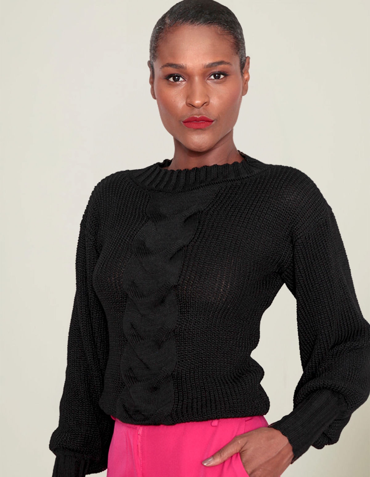 Blusa tricot manga longa detalhe frontal
