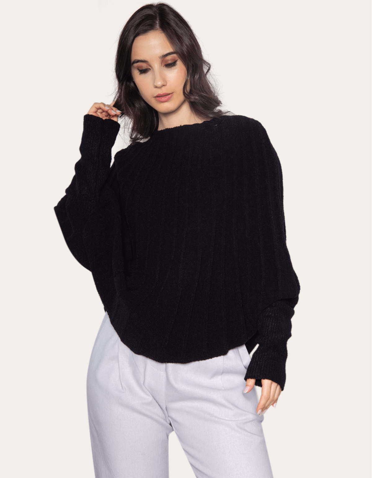 Blusa tricot manga longa morcego