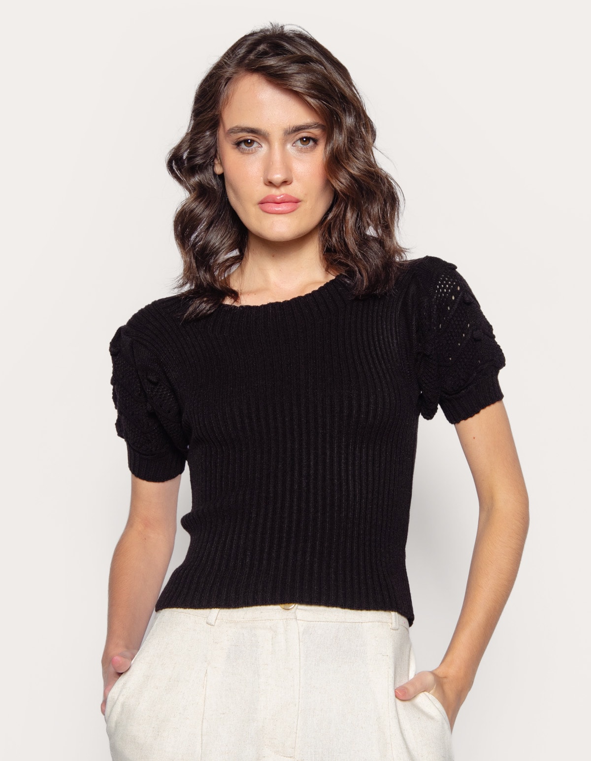Blusa tricot manga pipoca Preto