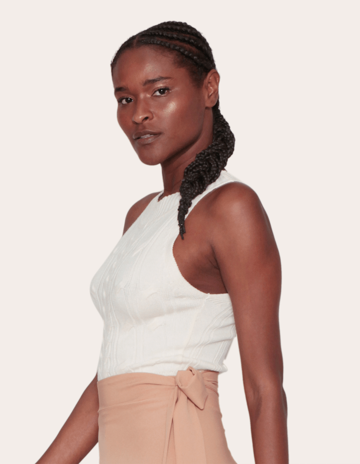 A blusa é confeccionada em tricot, combinando estilo e conforto. com detalhes de trança que adicionam textura e elegância. sem manga, esta peça é versátil para várias ocasiões - ideal para looks de dias mais quentes ou com sobreposições, a blusa oferece um toque artesanal e sofisticado ao seu visual. perfeita para combinar com peças de cintura alta, essa blusa sem manga de tricot é uma escolha moderna e charmosa.