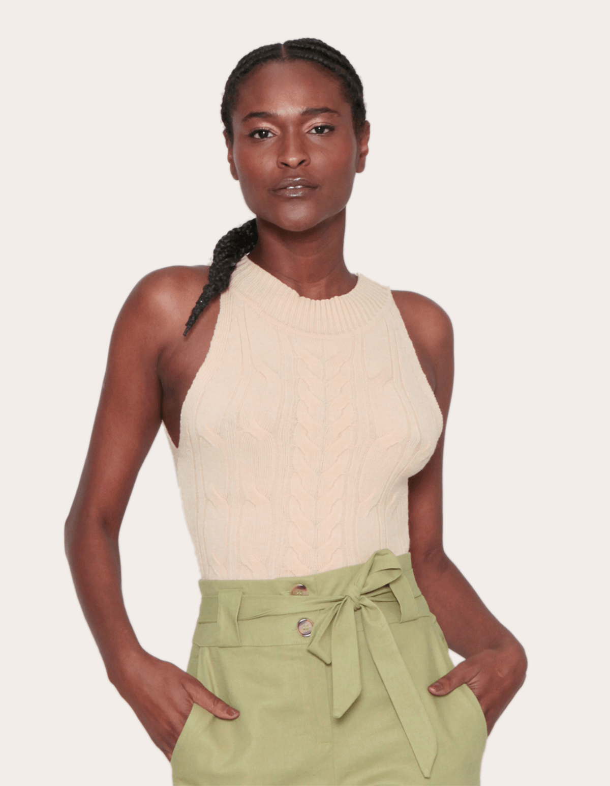 A blusa é confeccionada em tricot, combinando estilo e conforto. com detalhes de trança que adicionam textura e elegância. sem manga, esta peça é versátil para várias ocasiões - ideal para looks de dias mais quentes ou com sobreposições, a blusa oferece um toque artesanal e sofisticado ao seu visual. perfeita para combinar com peças de cintura alta, essa blusa sem manga de tricot é uma escolha moderna e charmosa.