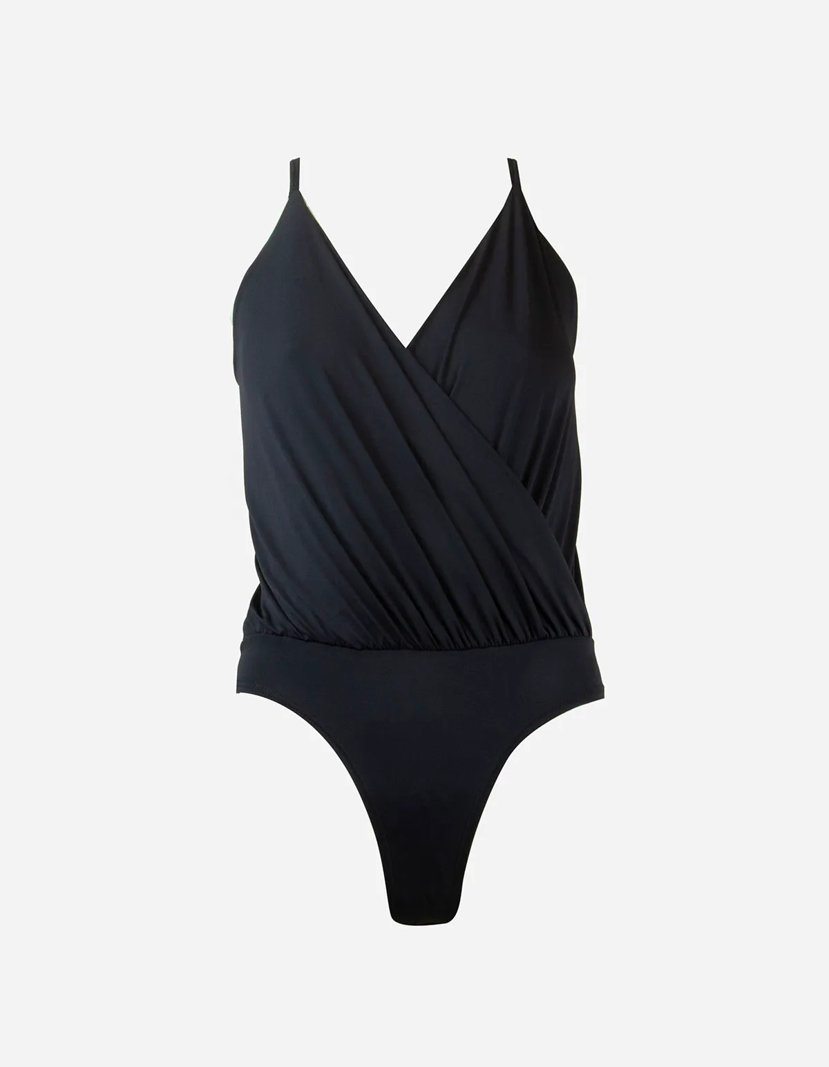 Body com decote transpassado bem como suas alças finas que transpassam nas costas, formando um drapeado sofisticado em seu decote. confeccionado em poliéster com elastano, de toque macio. peça super versátil, pois se adapta a várias ocasiões, proporcionando combinações incríveis no verão. fechamento entre as pernas por meio de colchetes.