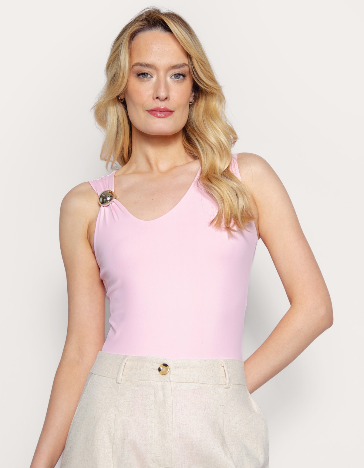 Body golinha alta drapeada de cavas justas ao corpo. O detalhe drapeado é o principal toque de estilo da peça, que confere elegância e movimento à peça, contrastanto com a modelagem justa ao corpo.