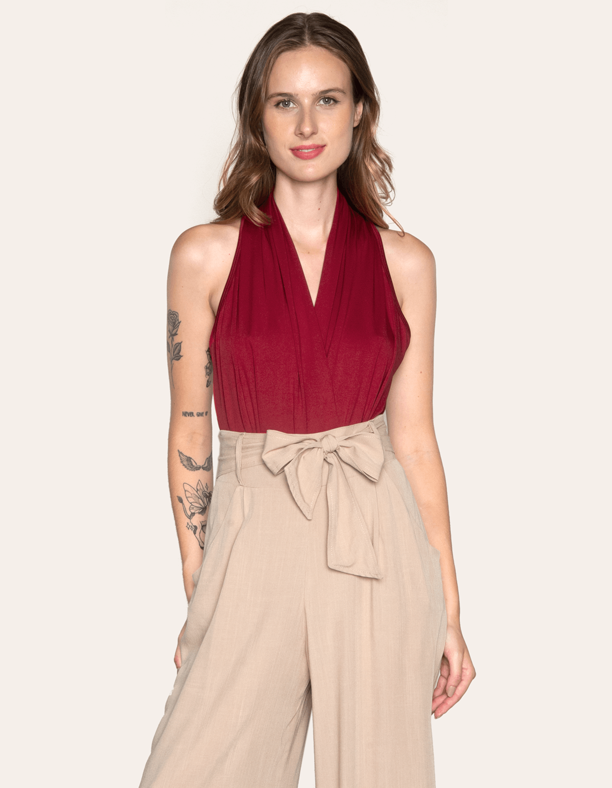 Apresentamos o body sem mangas transpassado, uma peça indispensável para o verão. com decote em v e modelo cavado, alonga a silhueta com elegância. versátil, pode ser combinado com calças ou shorts, oferecendo estilo em diferentes ocasiões. sem mangas, é perfeito para dias quentes. o fechamento entre as pernas por meio de colchetes adiciona praticidade ao vestir. um item essencial que une moda e conforto para a estação.