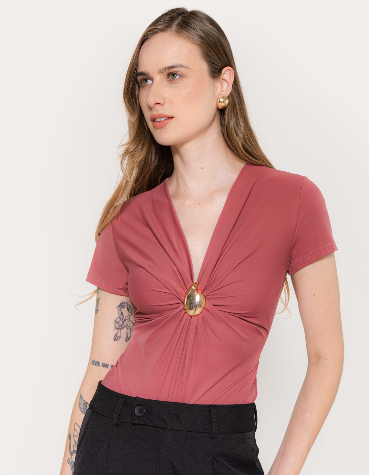 Body decote v detalhe broche