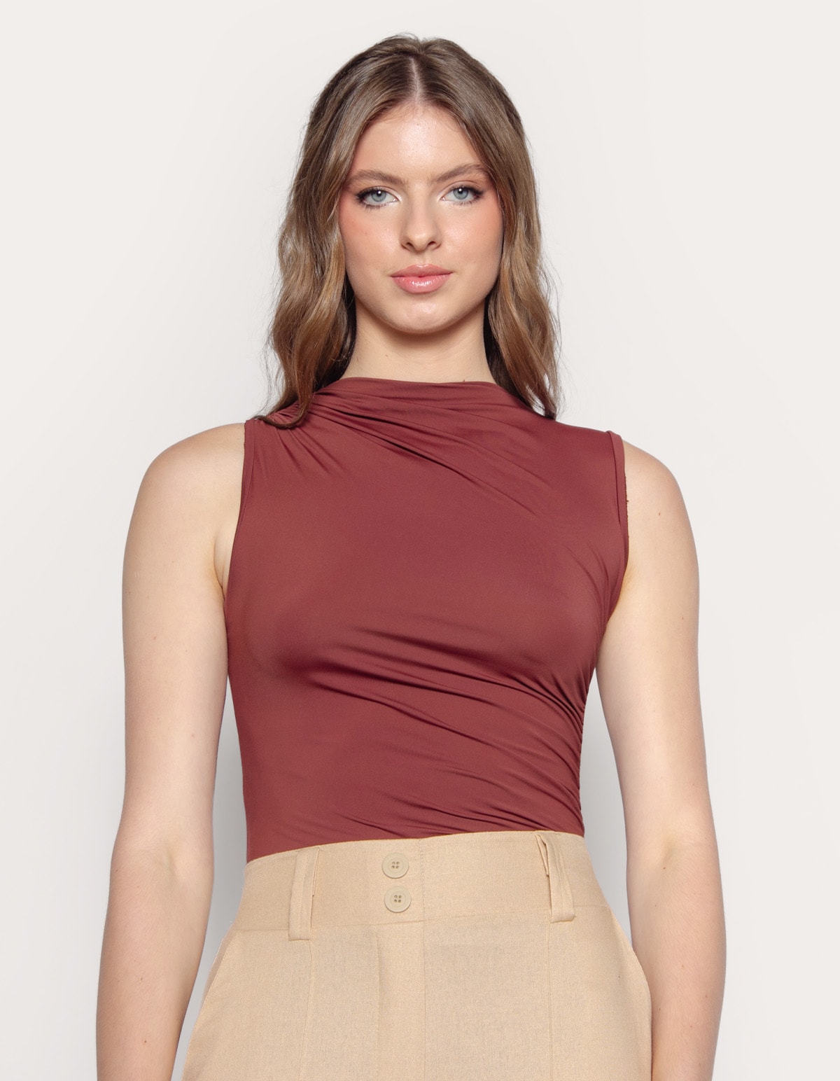 Body cavado golinha alta drapeada. Versátil, minimalista e moderno.
