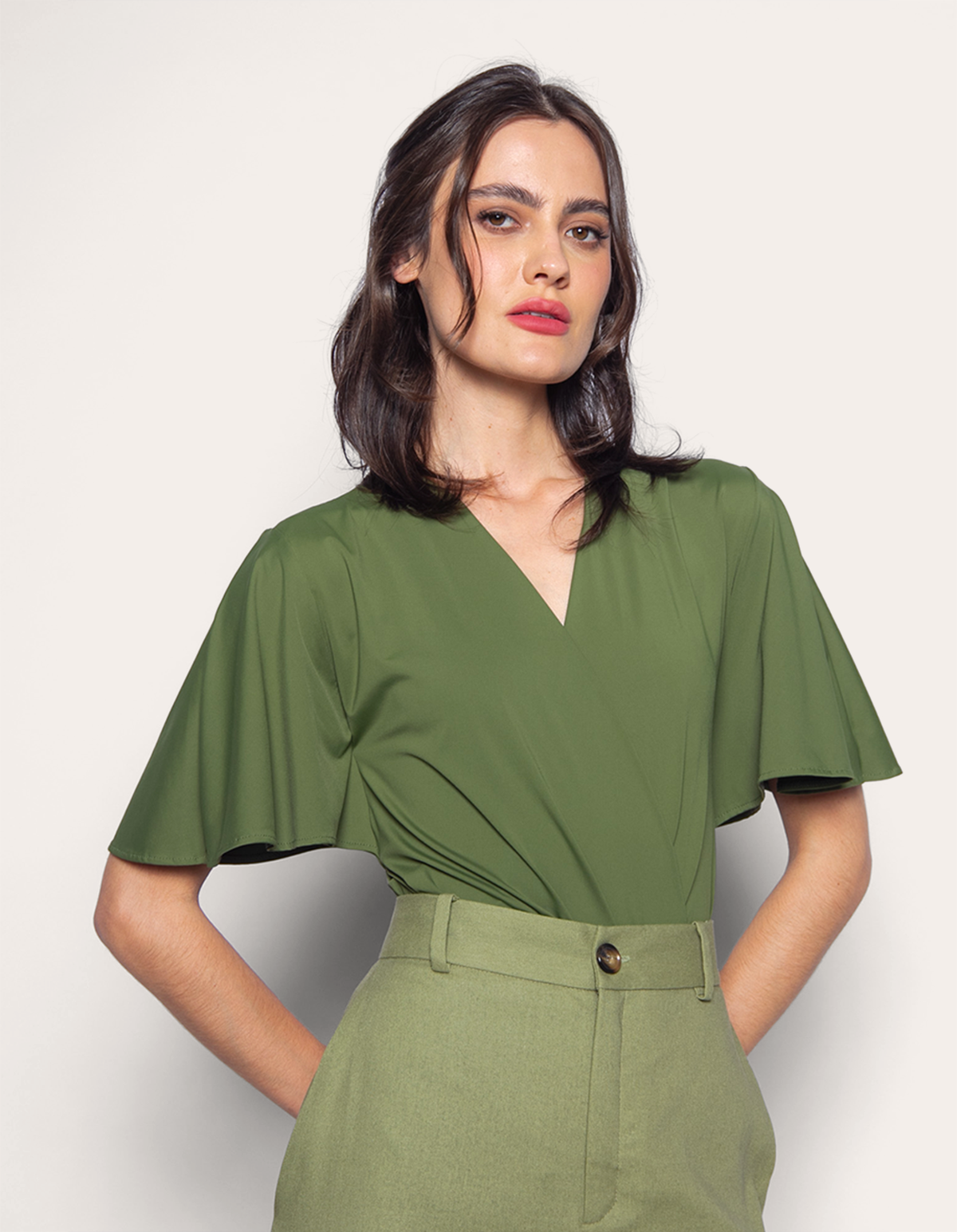 Apresentamos o body manga curta godê transpassado, uma peça que se destaca pelo estilo e movimento. com decote em v e mangas curtas em estilo godê, oferece um toque único. versátil, combina bem com calças ou saia midi, adaptando-se a diversas ocasiões. o fechamento entre as pernas por colchetes proporciona praticidade. um item que une moda e funcionalidade, adicionando elegância aos looks.
