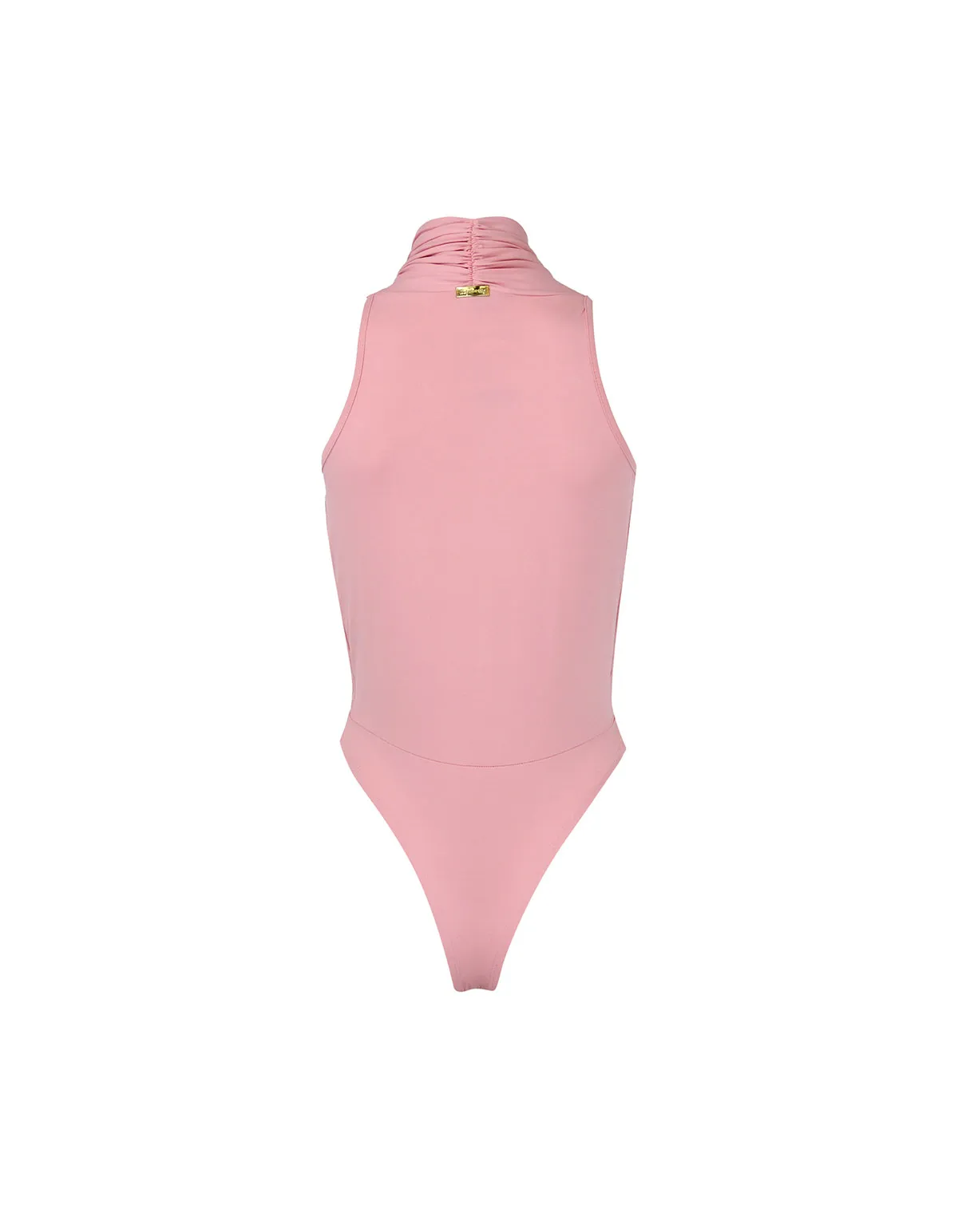 Body feminino sem manga transpassado com efeito plissado e decote v.