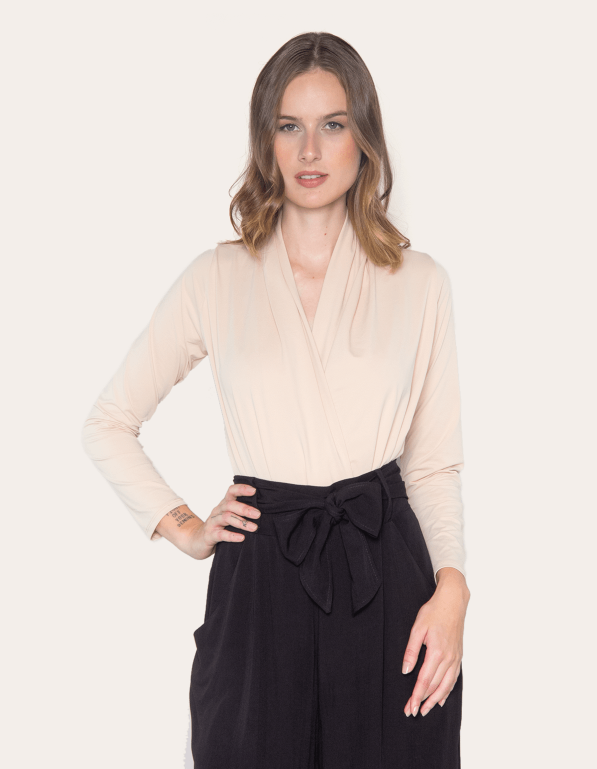 Body transpassado, com mangas longas. confeccionado em poliamida de toque macio. o body virou hit e é uma peça-chave para criar looks casuais, noturnos e mais clássicos, com uma pitada de sensualidade. por ser essa peça versátil a cartela de cores é extensa. fechamento entre as pernas por meio de colchetes.