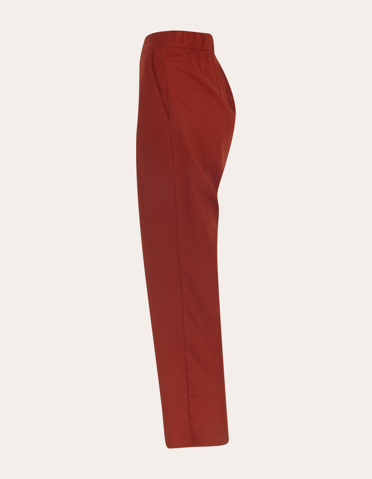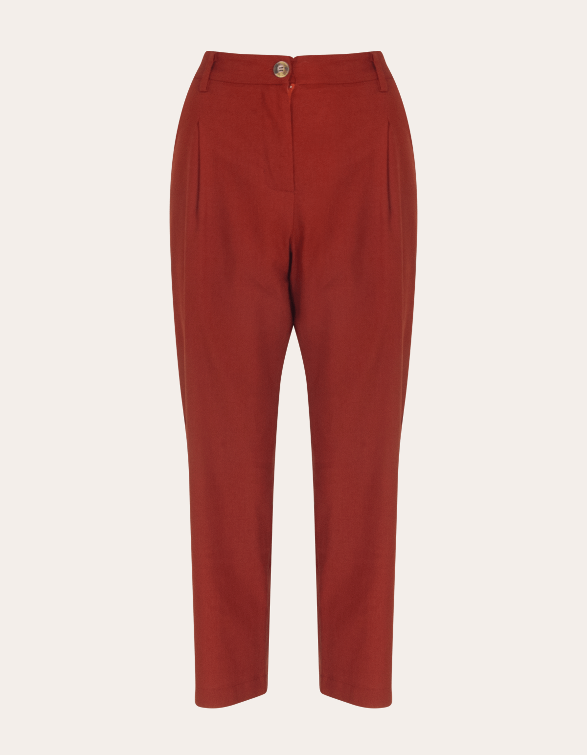 A carrot pants, chamada de calça cenoura no português, tem a cintura mais alta, tem o gancho um pouquinho mais baixo, com pregas na frente, possui fechamento frontal por zíper e botão, é mais ajustada na altura do quadril e vai afunilando em direção à barra da perna. com um ar arrumadinho de alfaiataria, porém o linho é leve e dá a possibilidade de montar tantos looks mais tradicionais com camisa, quanto algo mais despojado com t-shirt e tênis.