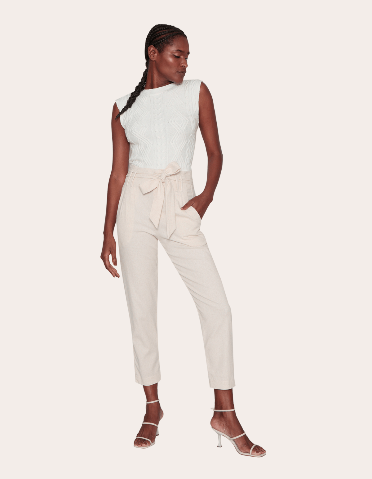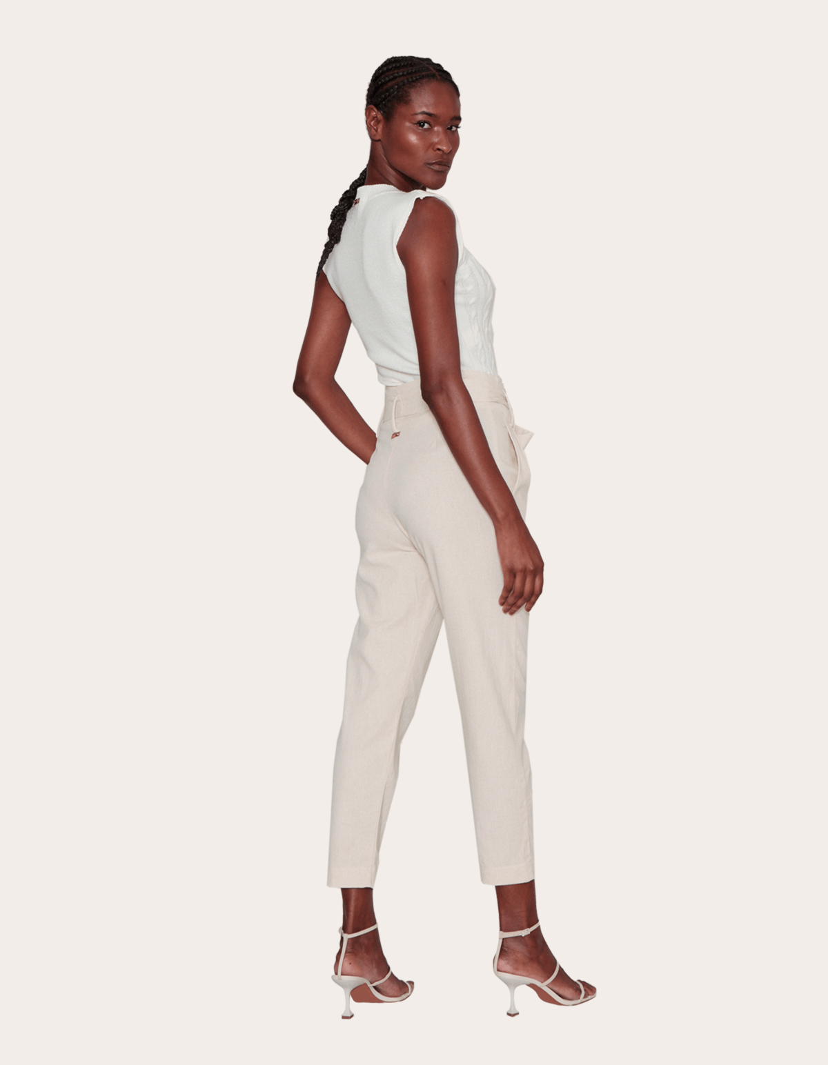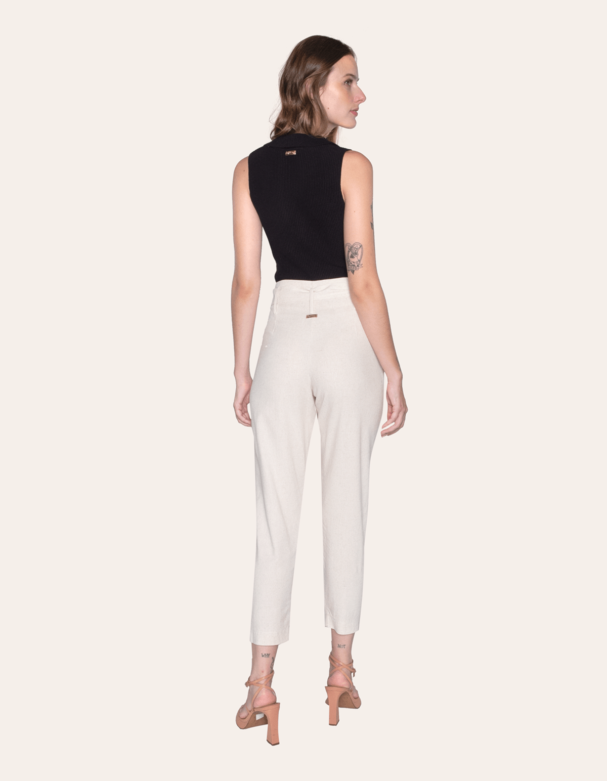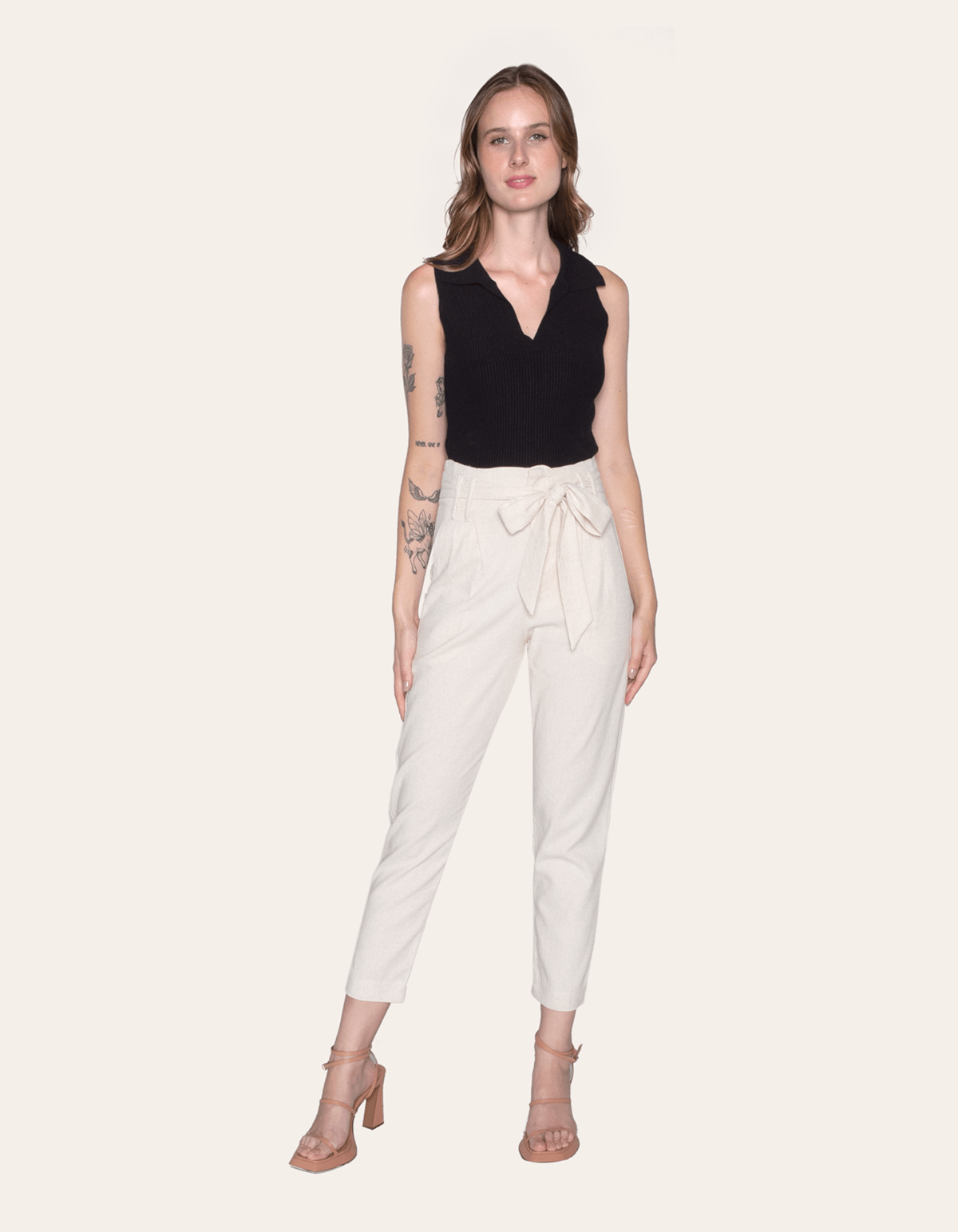 Calça cintura alta linho com faixa Cru
