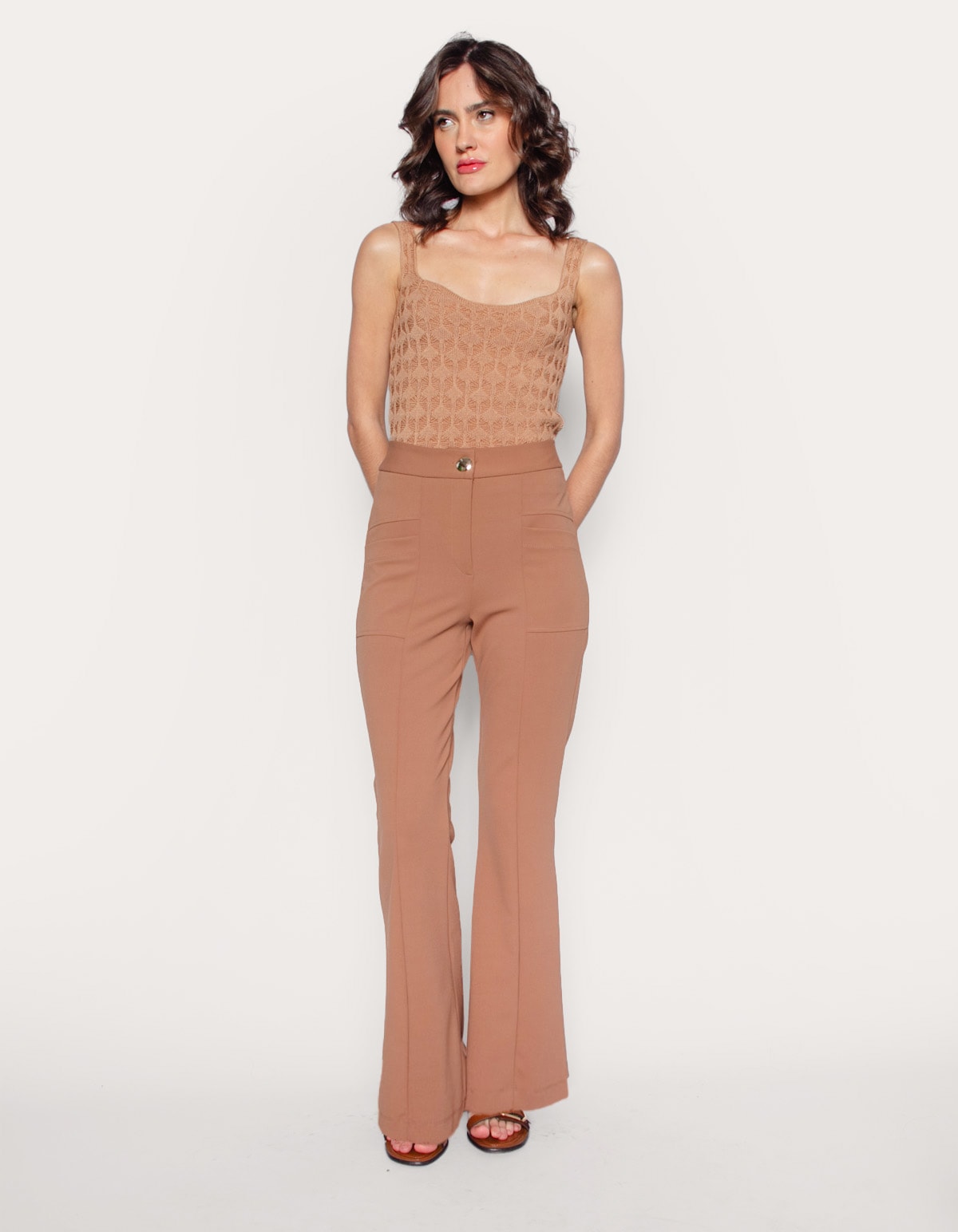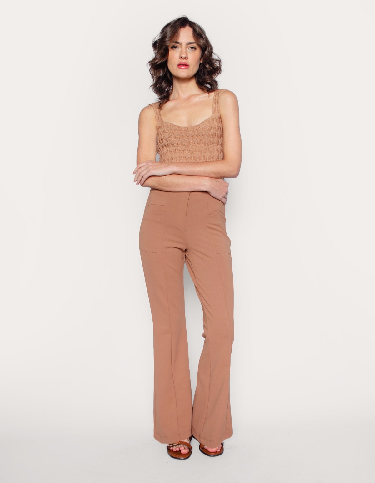 Calca flare malha com bolso