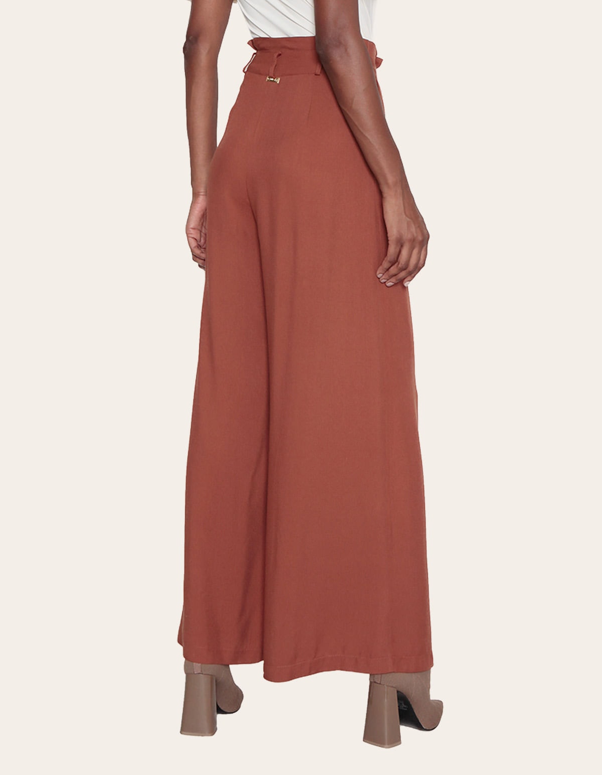 Apresentamos uma calça pantalona modelo maxi em tecido de viscose leve e caimento perfeito. seu cós de cintura alta tem um detalhe franzido, enquanto o fechamento frontal é feito por zíper e botão forrado. com elegância e versatilidade, essa peça é ideal para diversas ocasiões, combinando conforto e estilo de forma única.