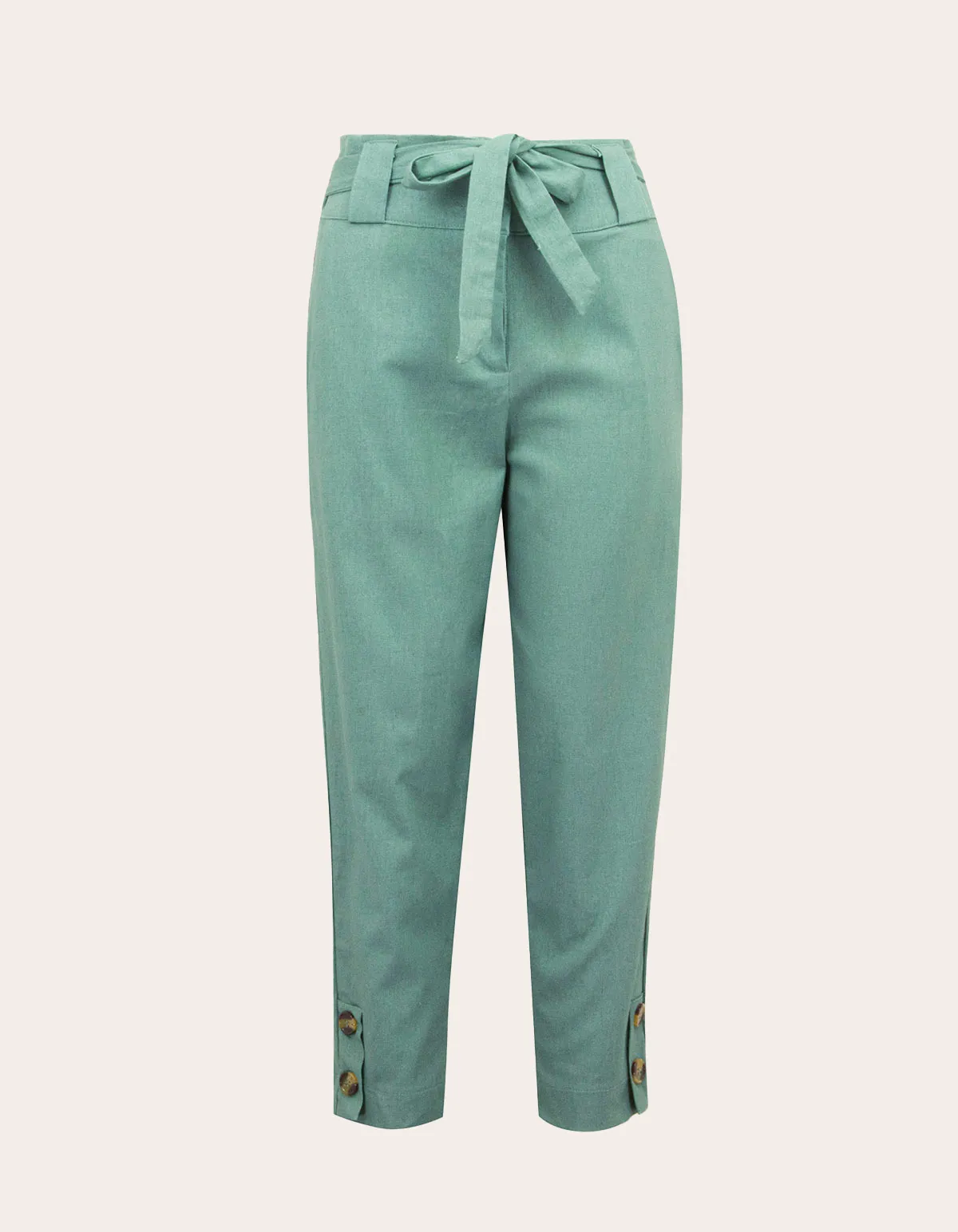 Apresentamos uma calça clochard feminina que combina moda e conforto. com bolsos frontais práticos e detalhes de botões na barra, essa peça oferece um toque sofisticado. a faixa para amarrar na cintura proporciona um ajuste personalizado, ideal para um caimento perfeito. uma escolha versátil para ocasiões diversas, oferecendo um estilo moderno e descontraído.