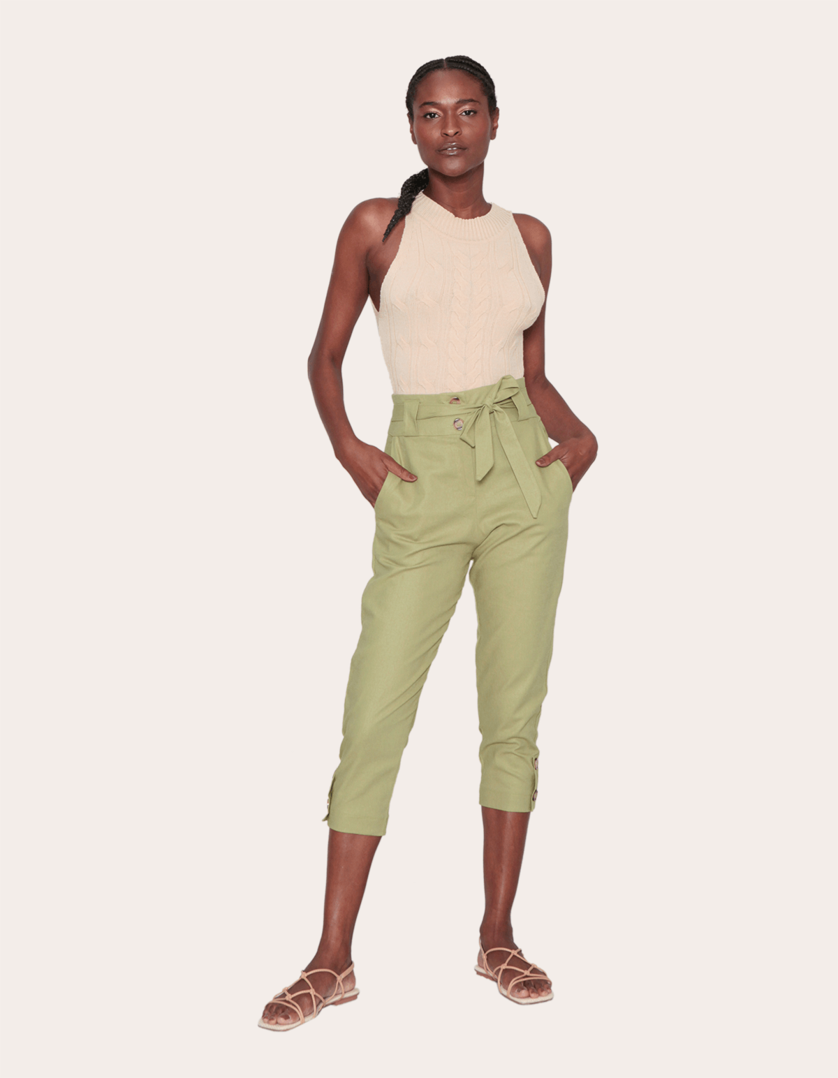 Apresentamos uma calça clochard feminina que combina moda e conforto. com bolsos frontais práticos e detalhes de botões na barra, essa peça oferece um toque sofisticado. a faixa para amarrar na cintura proporciona um ajuste personalizado, ideal para um caimento perfeito. uma escolha versátil para ocasiões diversas, oferecendo um estilo moderno e descontraído.