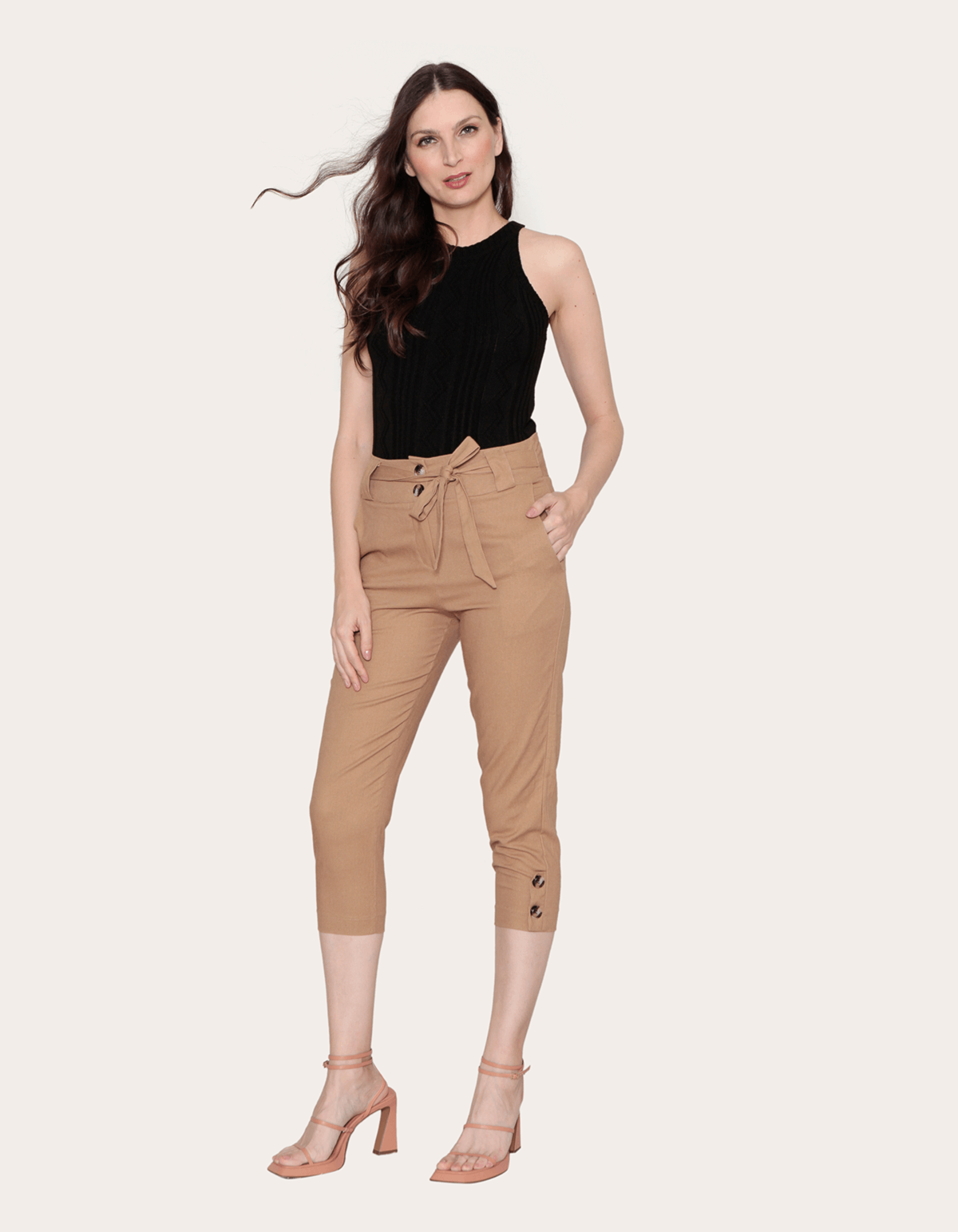 Apresentamos uma calça clochard feminina que combina moda e conforto. com bolsos frontais práticos e detalhes de botões na barra, essa peça oferece um toque sofisticado. a faixa para amarrar na cintura proporciona um ajuste personalizado, ideal para um caimento perfeito. uma escolha versátil para ocasiões diversas, oferecendo um estilo moderno e descontraído.