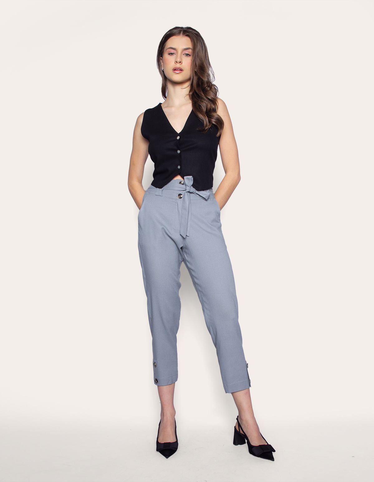 Apresentamos uma calça clochard feminina que combina moda e conforto. com bolsos frontais práticos e detalhes de botões na barra, essa peça oferece um toque sofisticado. a faixa para amarrar na cintura proporciona um ajuste personalizado, ideal para um caimento perfeito. uma escolha versátil para ocasiões diversas, oferecendo um estilo moderno e descontraído.
