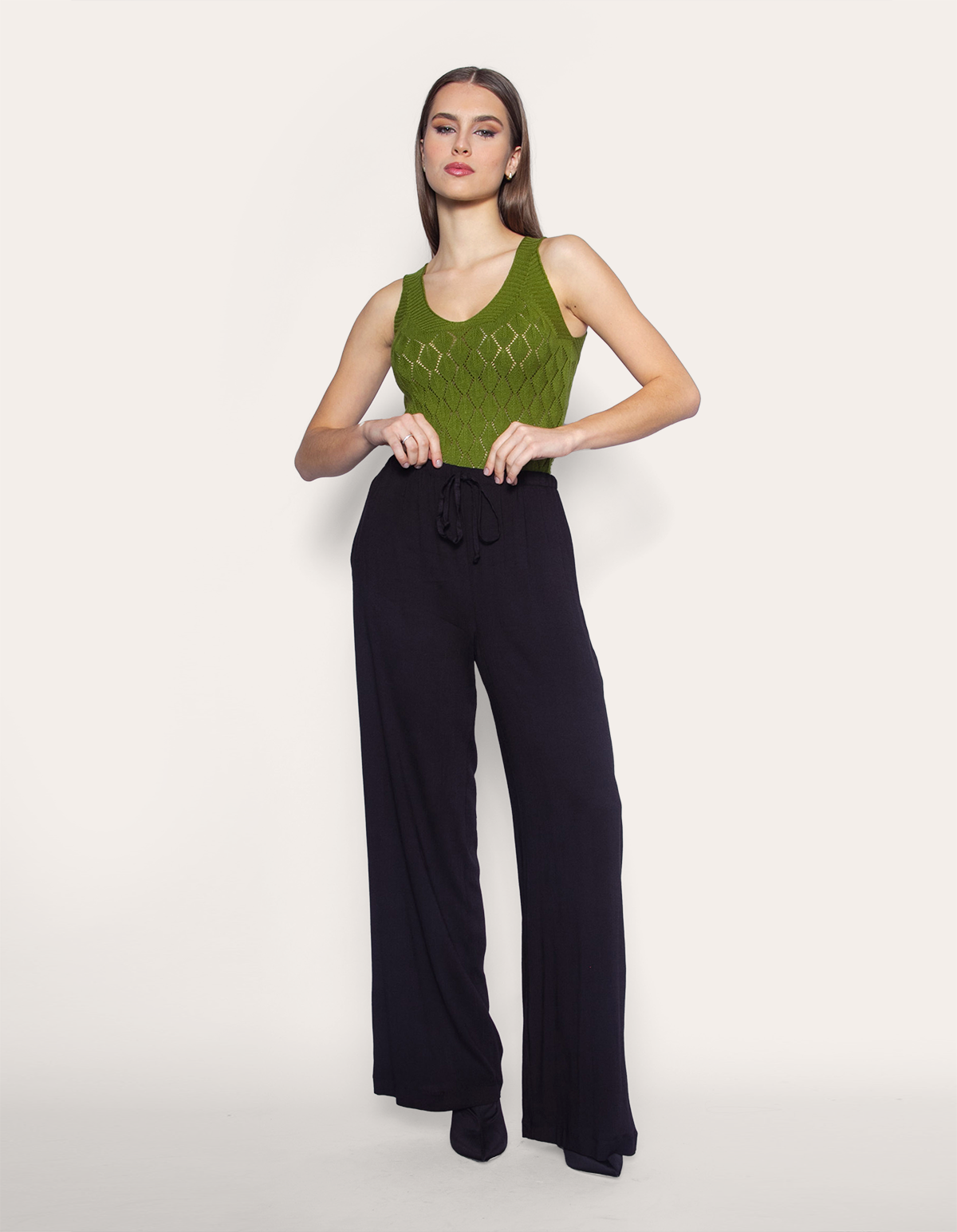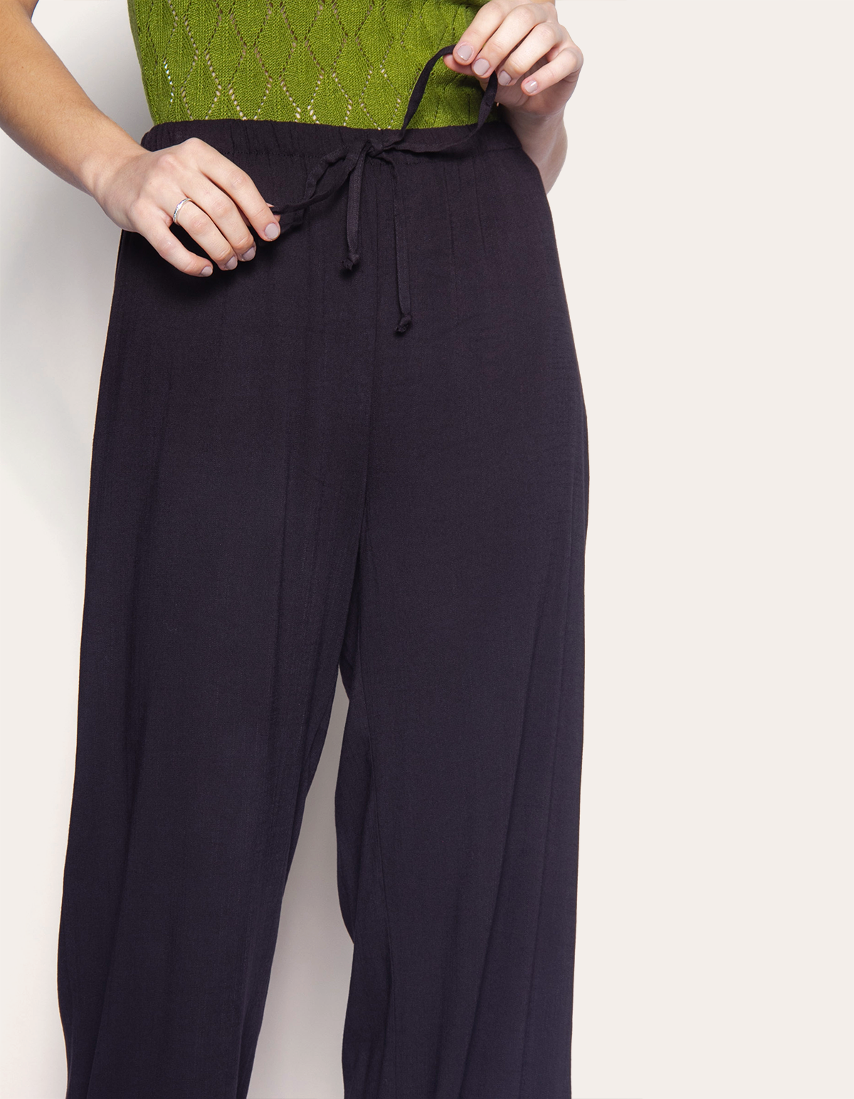 Calça fluída confeccionada em viscose, com elástico e amarração na cintura. conta com cintura média e bolsos laterais. versátil e estilosa, essa calça é perfeita para diversas ocasiões, oferecendo um visual elegante e confortável ao mesmo tempo, seja para um look casual no dia a dia ou uma produção mais sofisticada para eventos especiais.