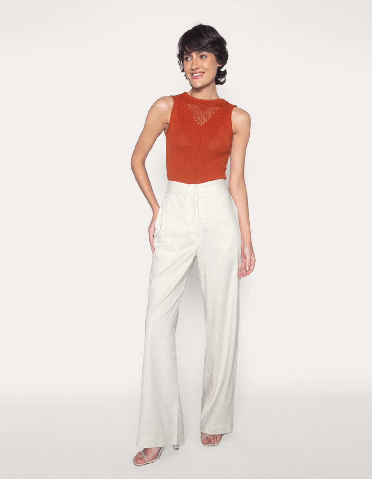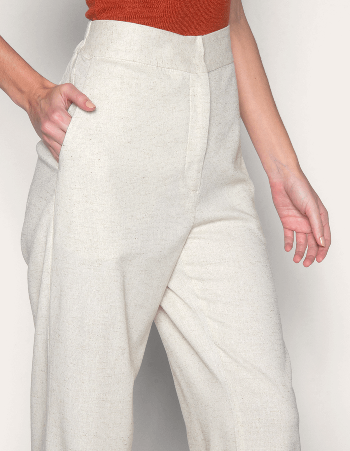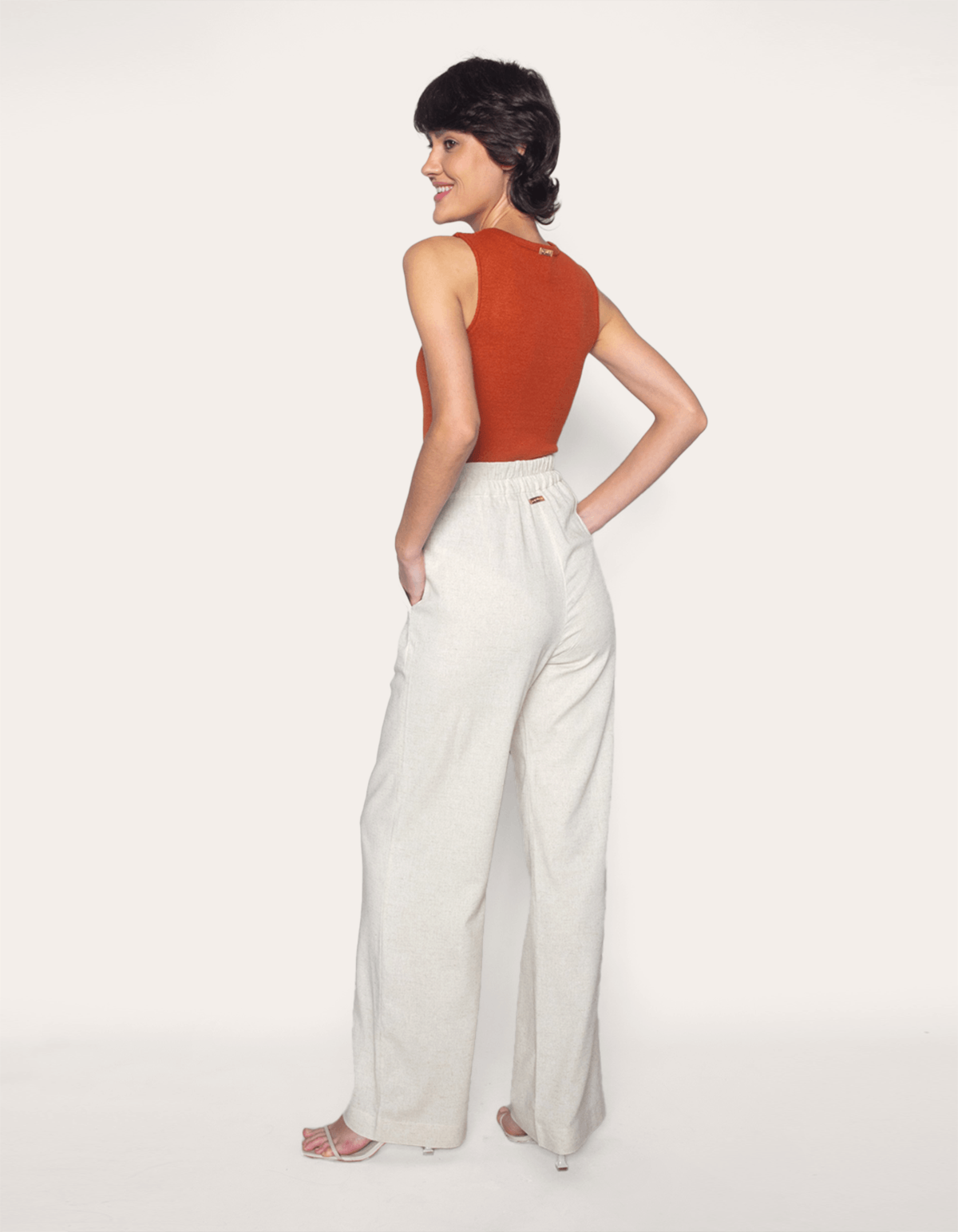 Composição: 78% viscose, 15% linho, 5% algodão, 2% elastano