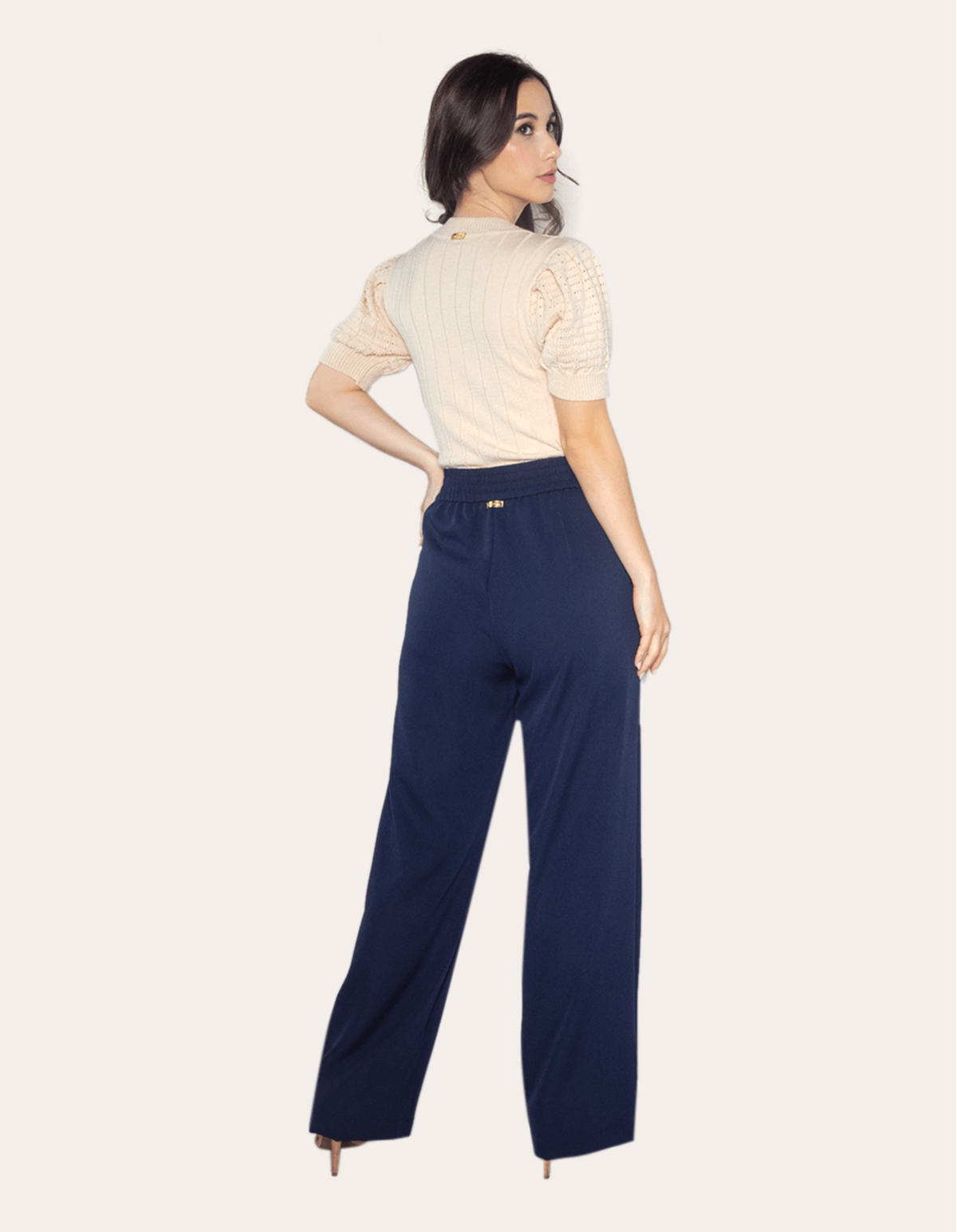 Calça pantalona alfaiataria cós elástico