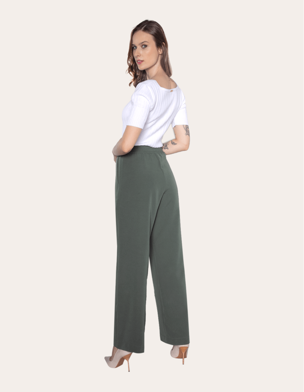 Calça pantalona alfaiataria cós elástico Verde militar