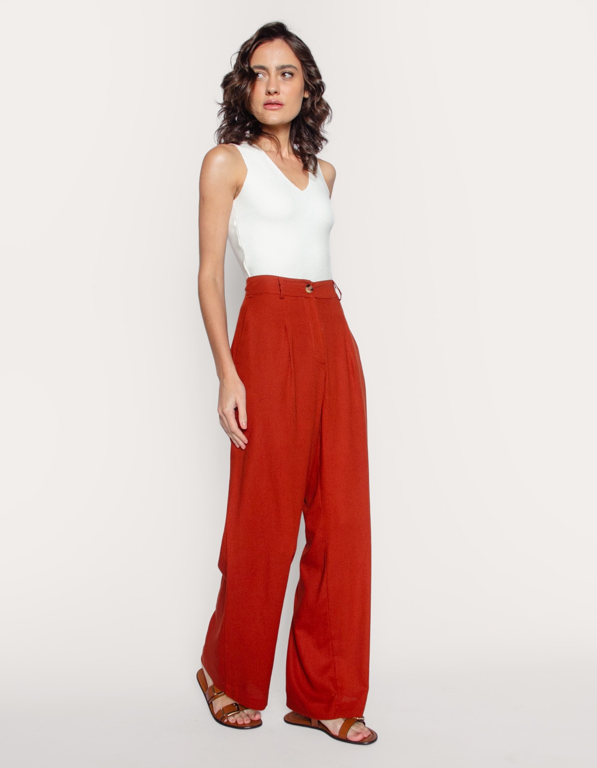 Calca pantalona alfaiataria linho blend