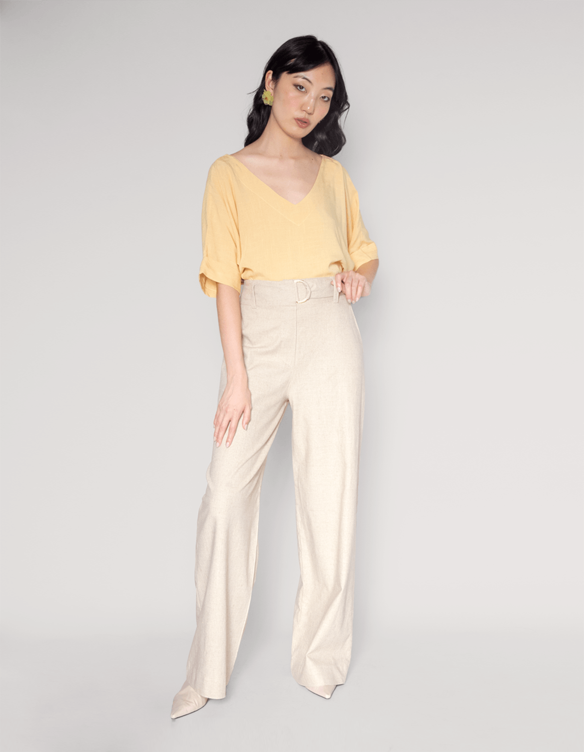 Calça pantalona confeccionada em viscose com linho. possui cós com passante acompanhado de cinto faixa meia argola no mesmo tecido e elástico franzido na cintura costas, bolsos faca funcionais. é a escolha perfeita para quem busca conforto e estilo!