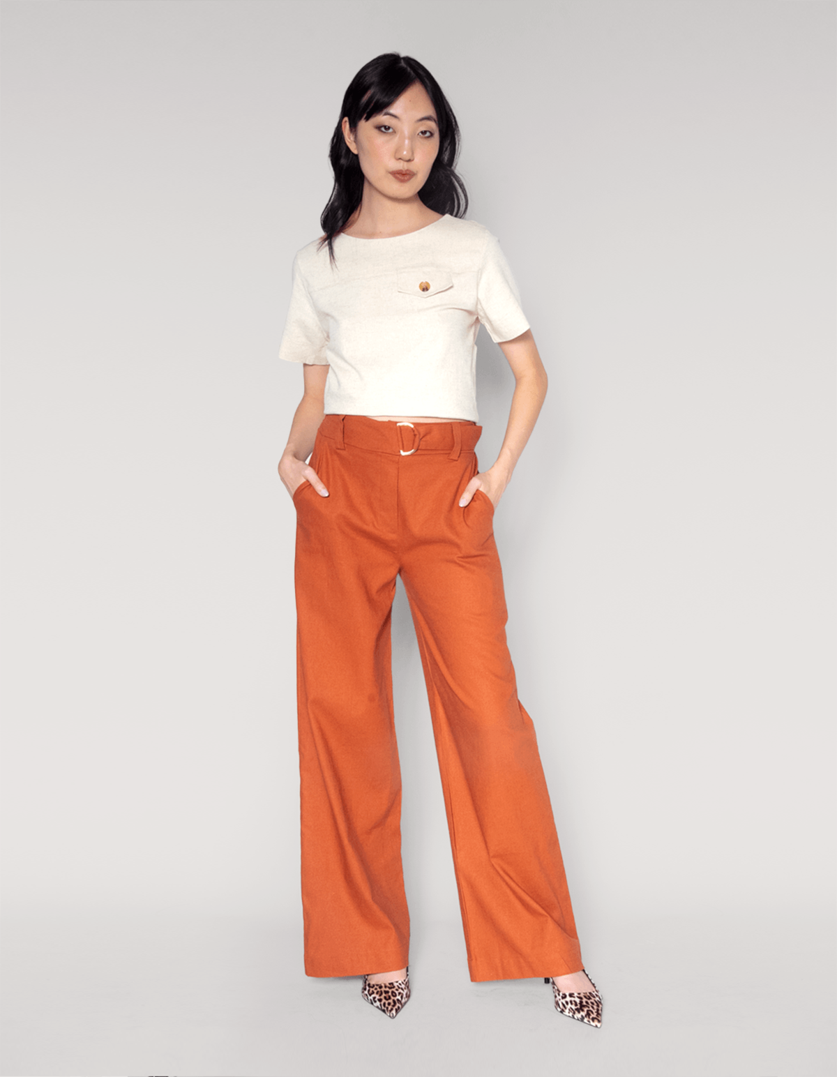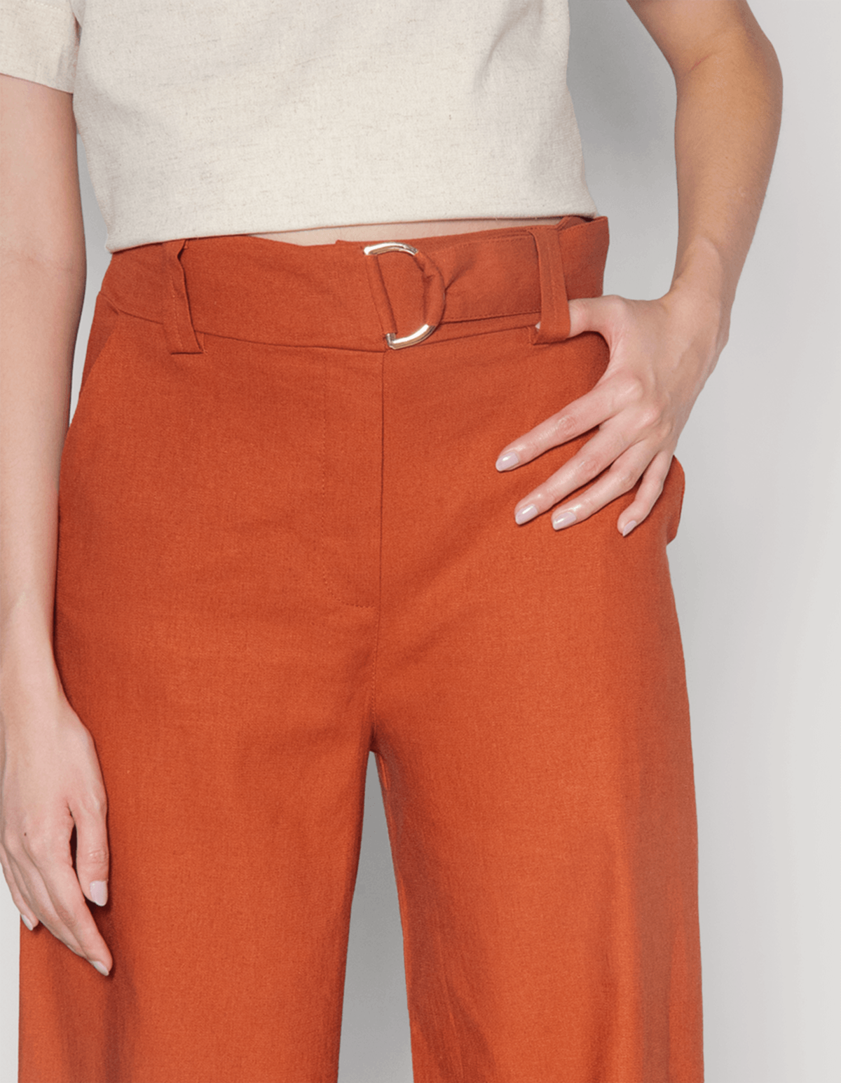Calça pantalona confeccionada em viscose com linho. possui cós com passante acompanhado de cinto faixa meia argola no mesmo tecido e elástico franzido na cintura costas, bolsos faca funcionais. é a escolha perfeita para quem busca conforto e estilo!