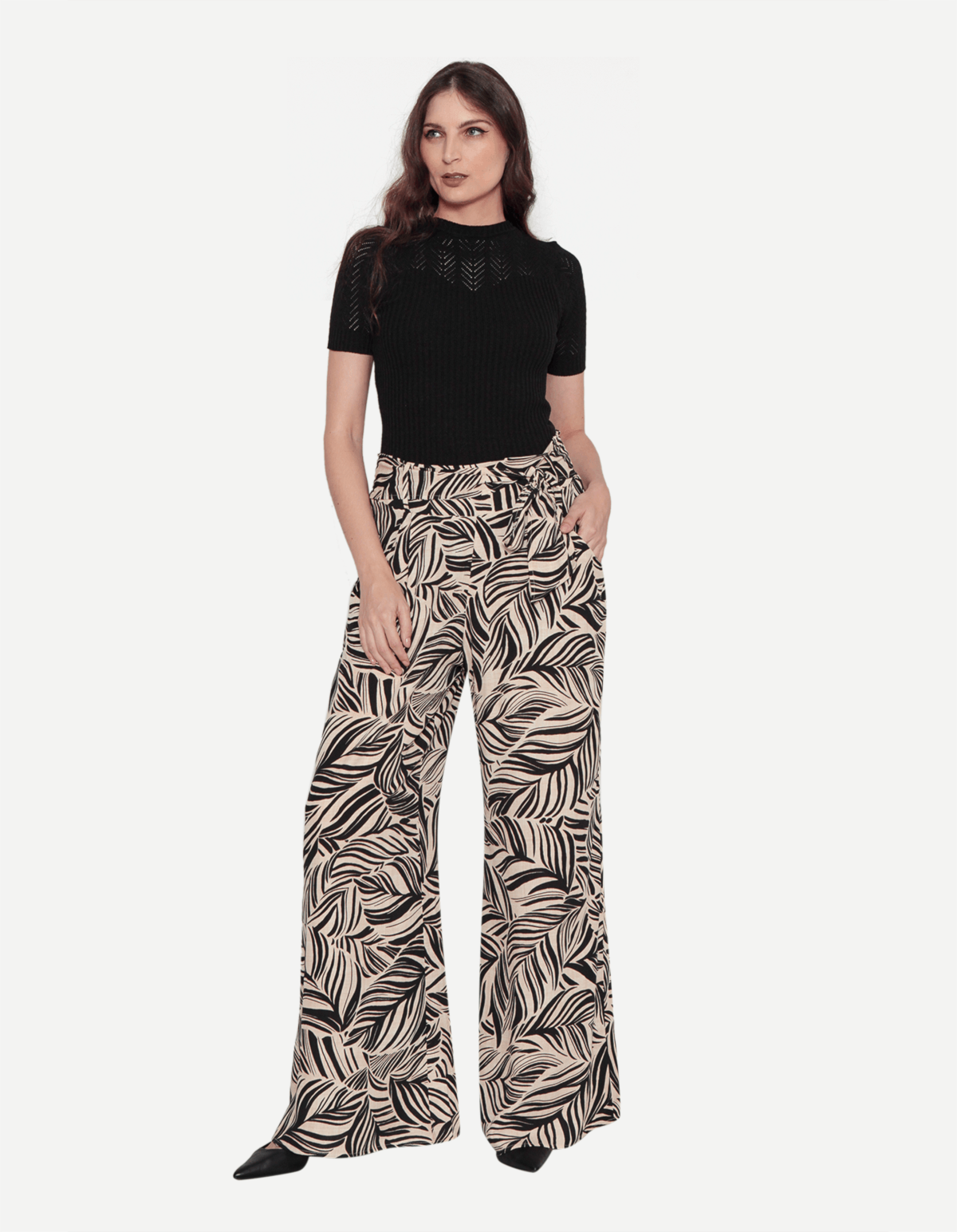 Calça pantalona com faixa