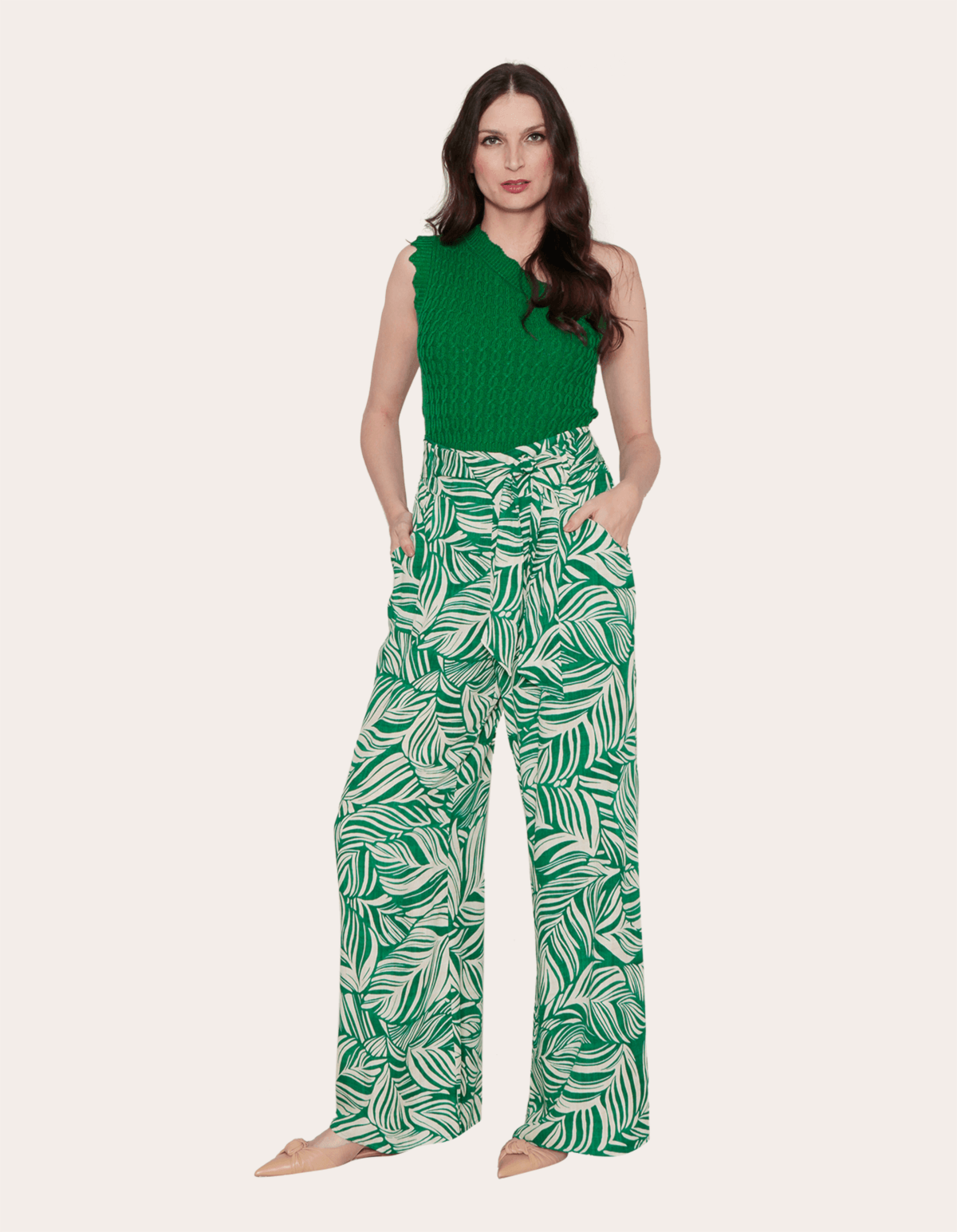 Apresentamos a calça pantalona de cintura alta com faixa para amarrar, uma peça que combina estilo e conforto de forma excepcional. com cintura alta, oferece um visual elegante e alongado. a faixa para amarrar na cintura proporciona charme e ajuste personalizado. a presença de bolsos adiciona praticidade e funcionalidade à peça. o elástico no cós traseiro proporciona conforto ao vestir. versátil, pode ser combinada de várias maneiras. perfeita para criar looks sofisticados e descontraídos, a calça oferece estilo e conforto para diversas ocasiões.