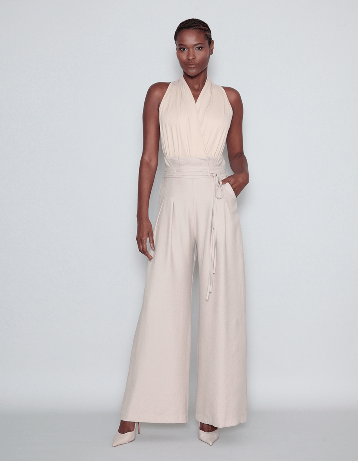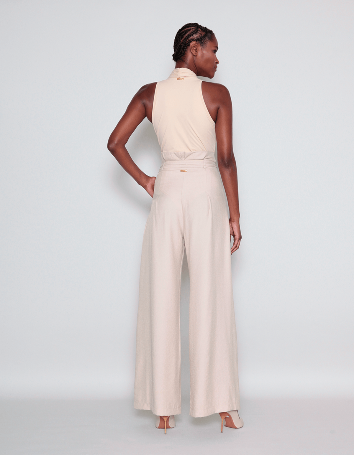 Confeccionada em alfaiataria. possui cós alto, passantes, bolso faca, pregas, fechamento em zíper na lateral e faixa fina no mesmo tecido para ajuste. é extremamente versátil, podendo ser combinada com blusas casuais para um look descontraído ou com camisas elegantes para um visual mais sofisticado. seja qual for a ocasião, esta calça é a escolha ideal para destacar sua personalidade com elegância e conforto.