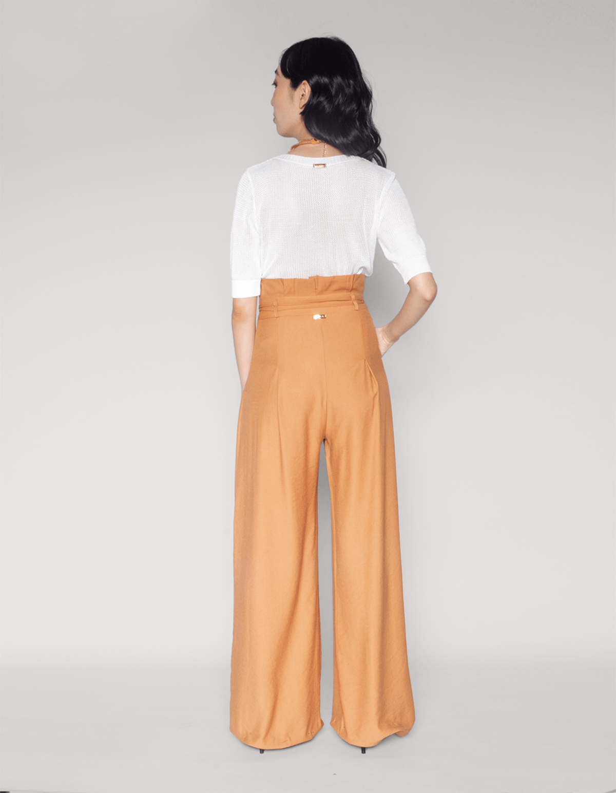 Confeccionada em alfaiataria. possui cós alto, passantes, bolso faca, pregas, fechamento em zíper na lateral e faixa fina no mesmo tecido para ajuste. é extremamente versátil, podendo ser combinada com blusas casuais para um look descontraído ou com camisas elegantes para um visual mais sofisticado. seja qual for a ocasião, esta calça é a escolha ideal para destacar sua personalidade com elegância e conforto.