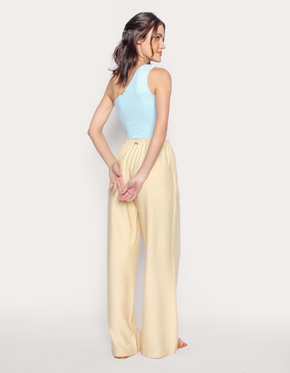 Calça fluída confeccionada em viscose, com elástico e amarração na cintura. Conta com cintura média e bolsos laterais. Versátil e estilosa, essa calça é perfeita para diversas ocasiões, oferecendo um visual elegante e confortável ao mesmo tempo, seja para um look casual no dia a dia ou uma produção mais sofisticada para eventos especiais.
