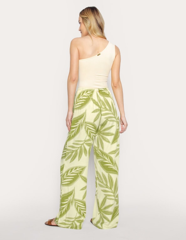 Calça pantalona de amarrar estampada