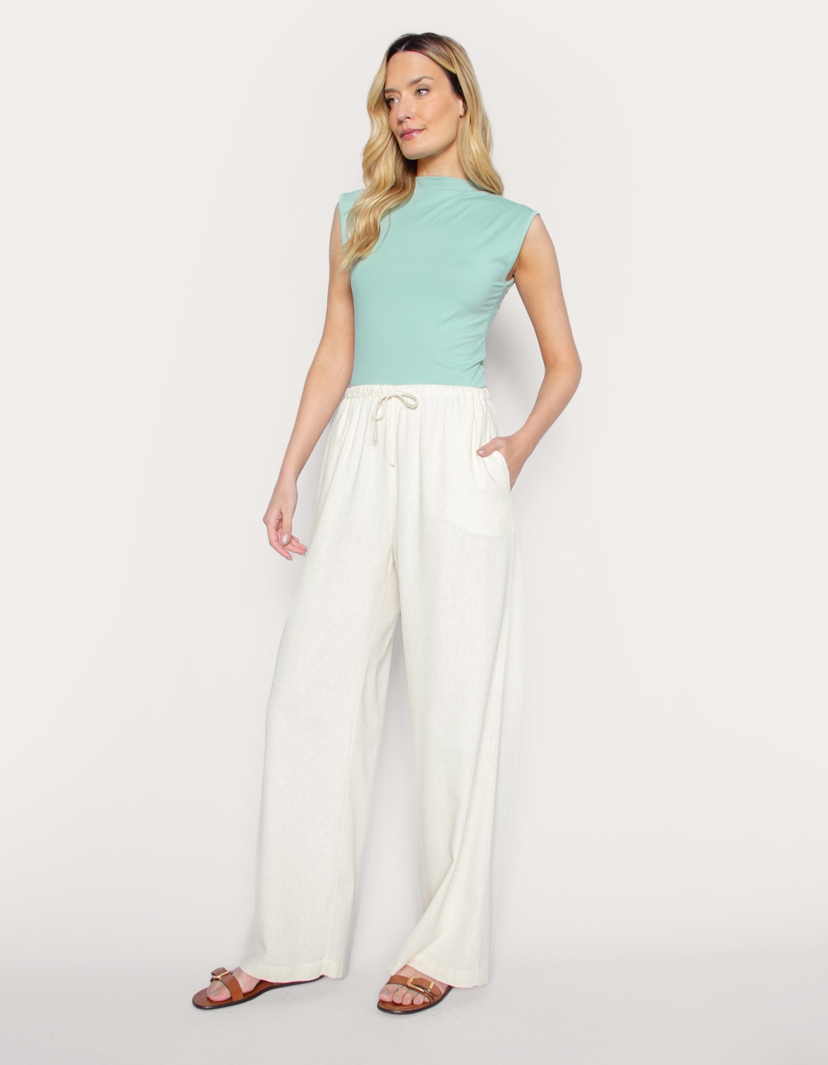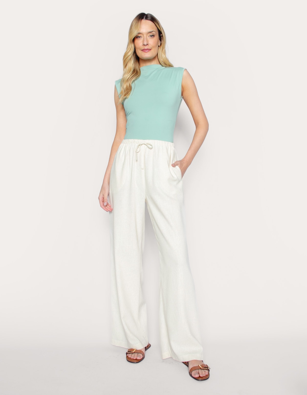 Calça pantalona de amarrar linho blend
