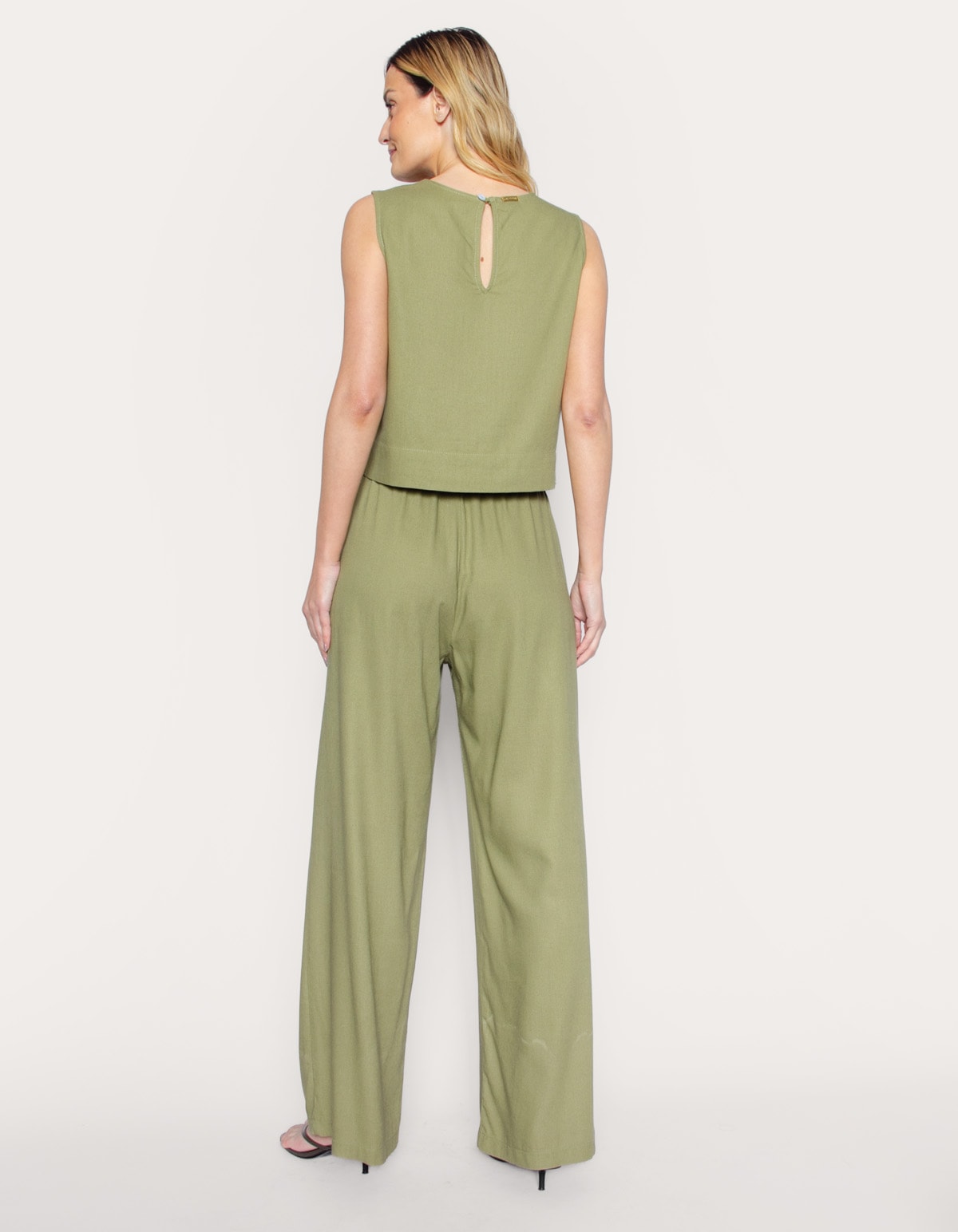 Calça pantalona de amarrar linho blend
