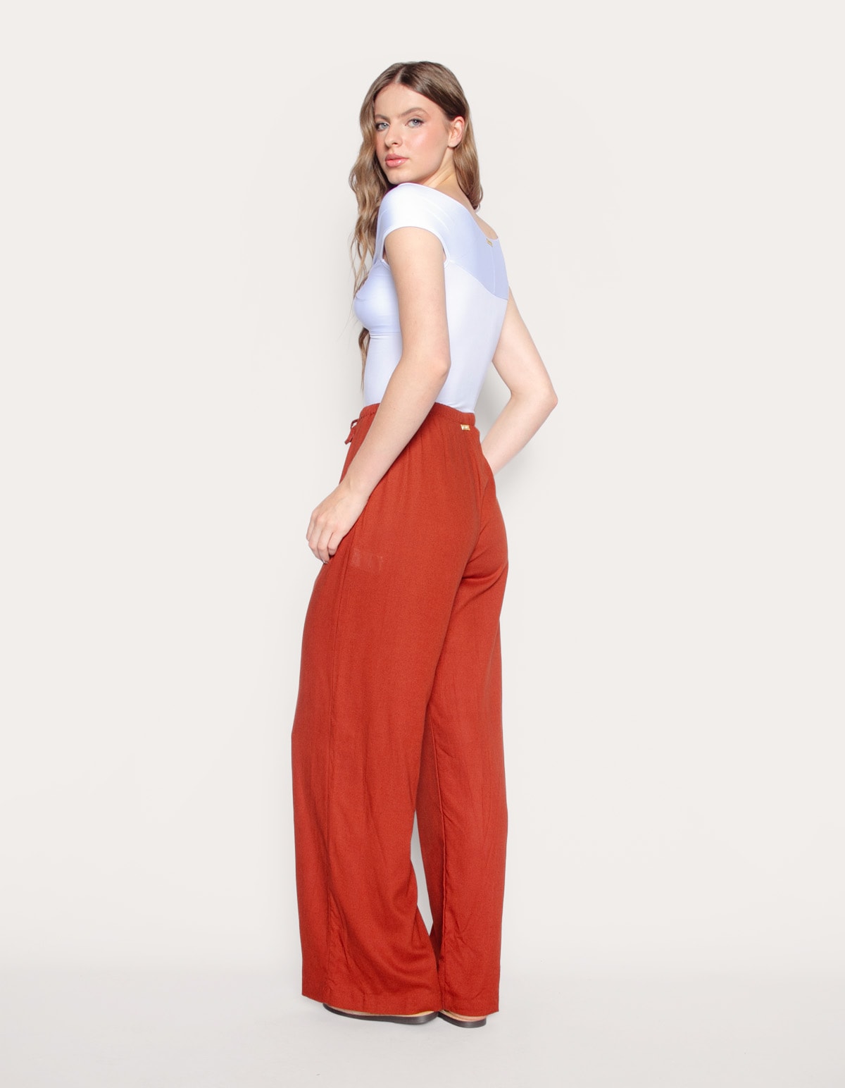 Calça pantalona de amarrar linho blend