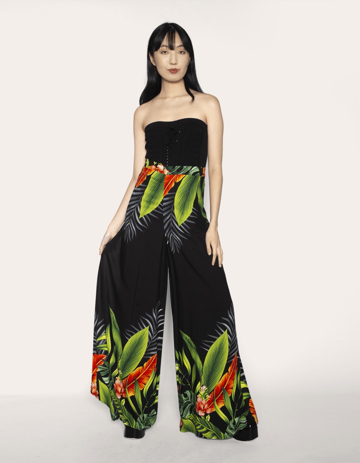 Calça pantalona envelope estampada