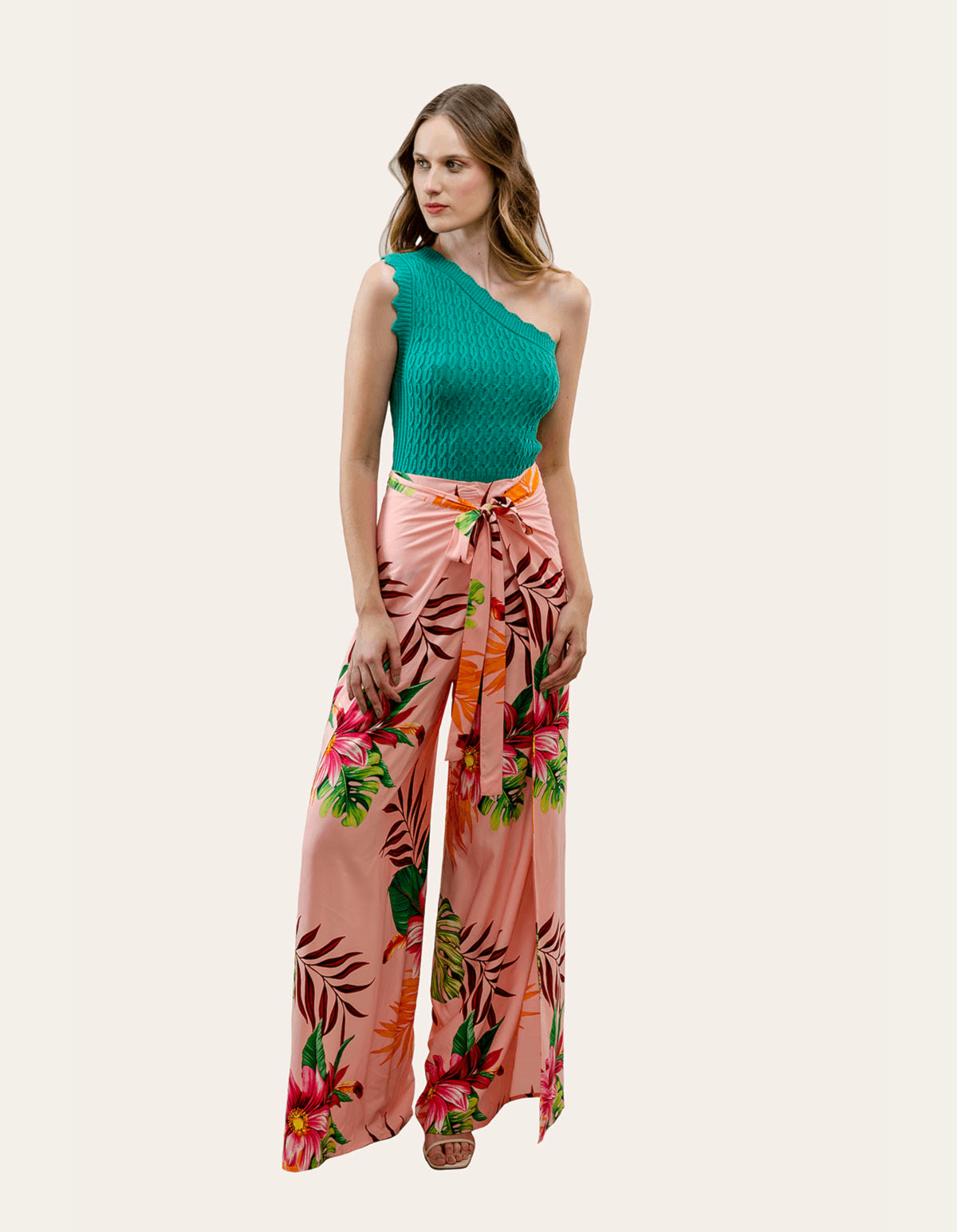 Calça pantalona transpassada, com faixa para amarração. conhecida pela versatilidade e conforto, a calça envelope apresenta shape amplo. super estilosa e confortável, pode ser usada em qualquer ocasião, para o trabalho, festa e até mesmo como saída de praia. pode ser amarrada para trás, em estilo pantalona lisa na frente, ou amarrada para frente dando um ar despojado para o look.