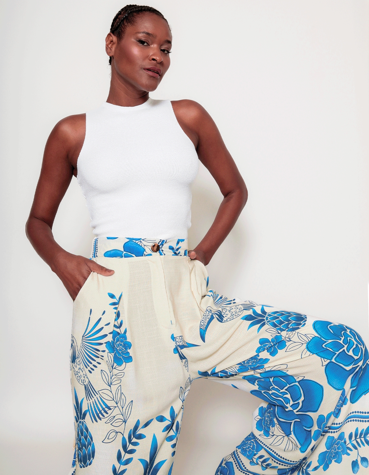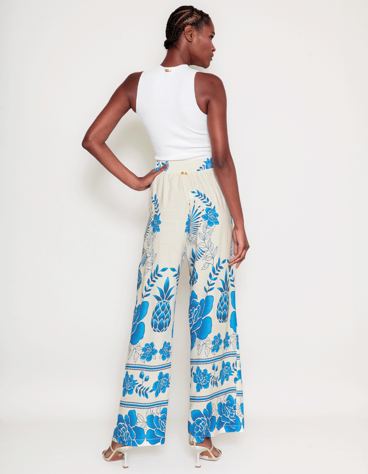 Calça pantalona estampada, fechamento por zíper e botão, com elástico na cintura (atrás). com modelagem ampla, a pantalona possui um corte que inicia abrindo na altura do quadril e vai aumentando de forma progressiva ela traz muito mais do que estilo e elegância para o look, ela agrega liberdade e conforto, que são pontos super importantes para o bem-estar. sua modelagem é democrática e veste muito bem todos os corpos, podendo ser considerada um coringa no guarda-roupas.