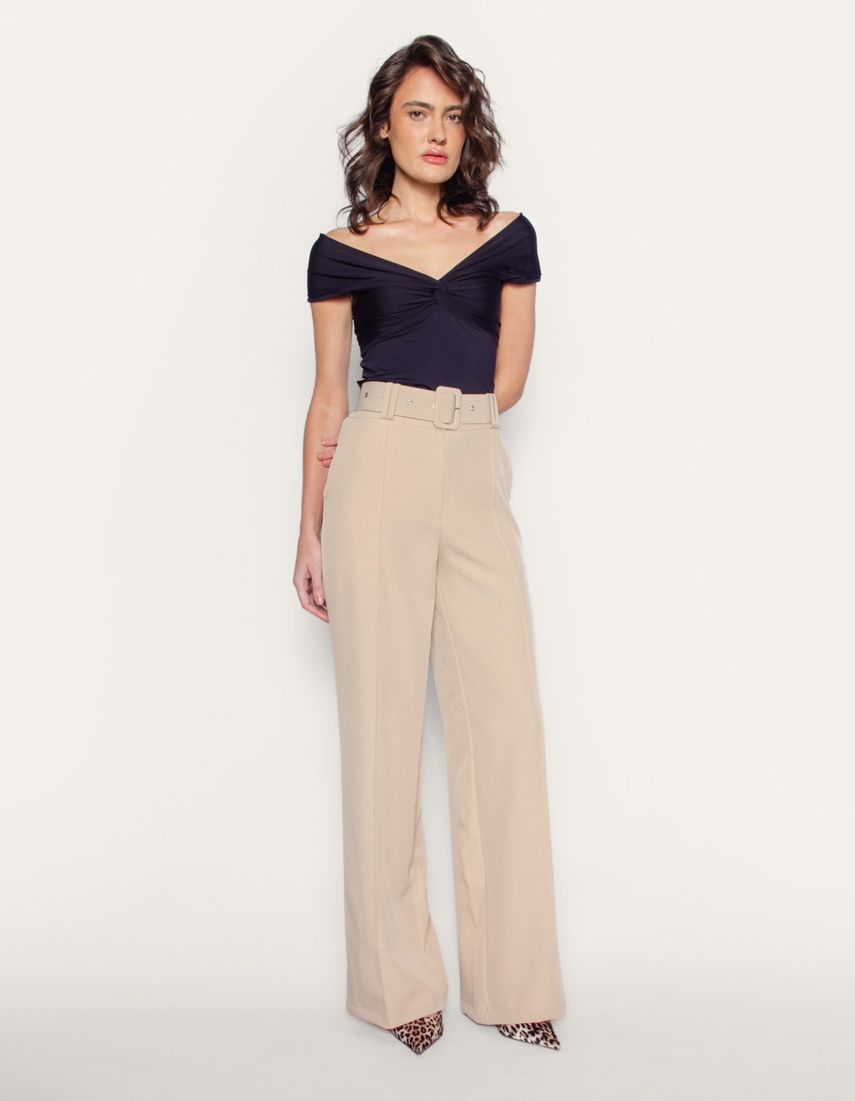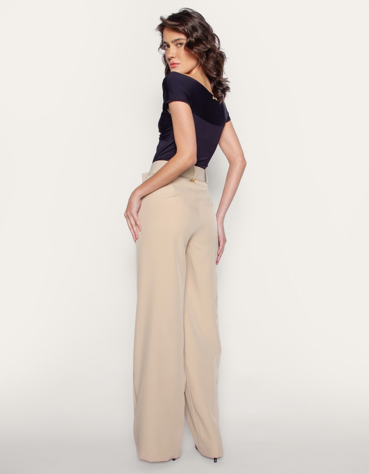 Calça pantalona friso frontal Bege