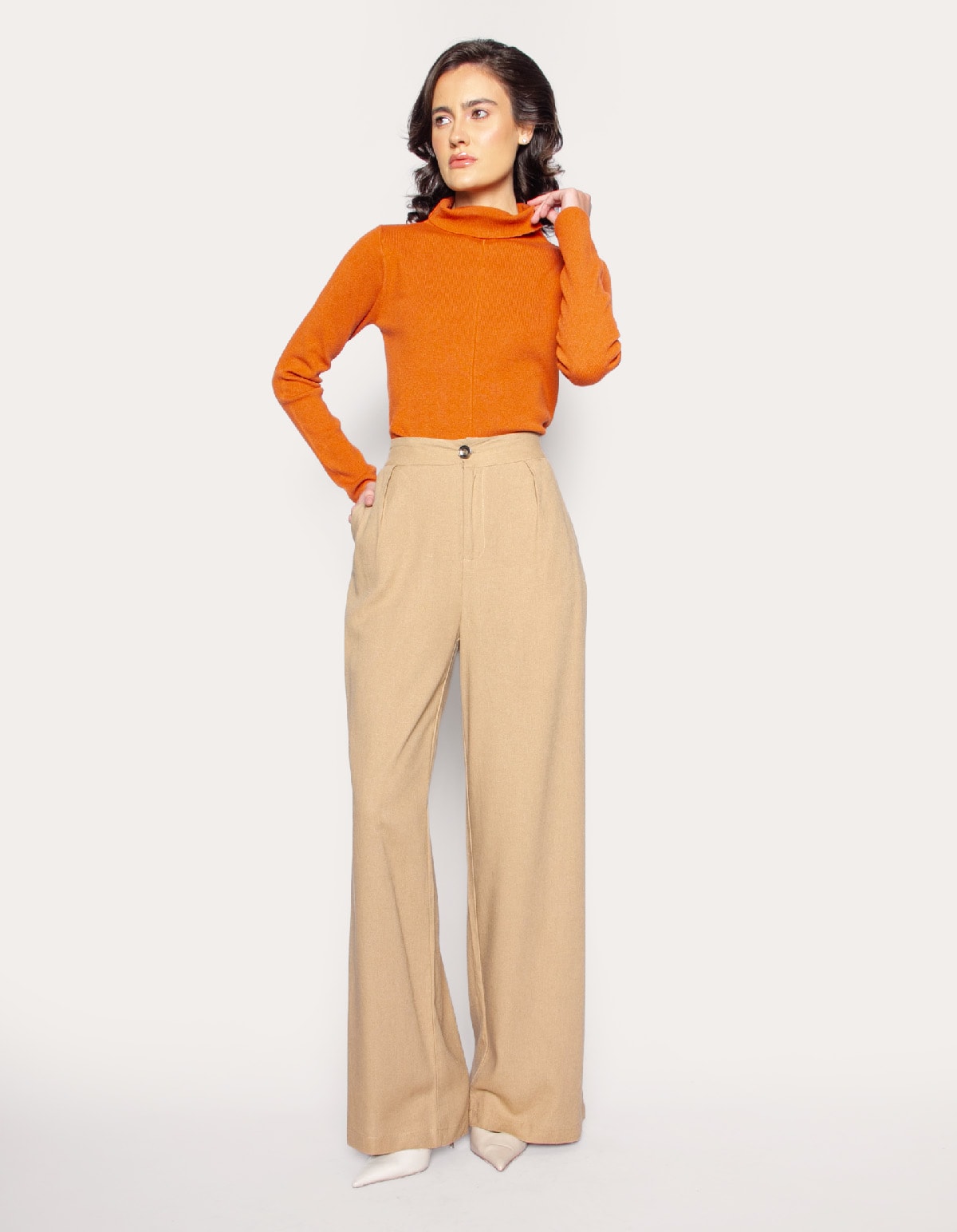 Calça modelagem pantalona, possui bolsos facas nas laterais e bolsos atrás, seu fechamento é por zíper e botão. esbanja elegância por onde passa.