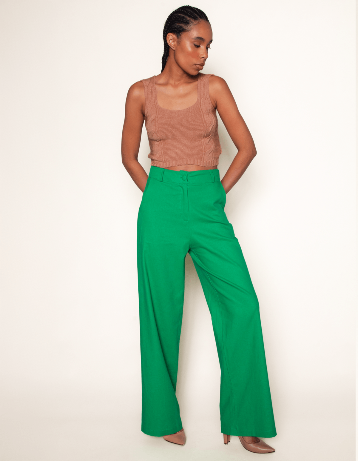 Calça pantalona em linho, muito usada para trabalho, a calça pantalona esbanja elegância por onde passa. ótima também para sair nos finais de semana, seja de dia ou a noite a calça super combina. com pernas largas além de alongar a silhueta deixa nossos movimentos mais soltos, ou seja, conforto absoluto. ela valoriza qualquer biotipo é um clássico renovado para ter em nosso closet. fechamento em zíper frontal e botão forrado, possui 2 bolsos faca nas laterais.